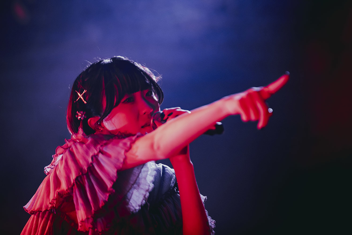 MCも早々に再びソロパートが始まる。続け様に単独でパフォーマンスを披露したのは吉田凜音。ドロップされた楽曲は「神パラサイト」だ。エレクトリカルなサウンドに挑発的に声を乗せ、オーディエンスを骨の髄から魅了する。そのパフォーマンスはこれまで以上に聴く人の心をくすぐるものとなっていた。
