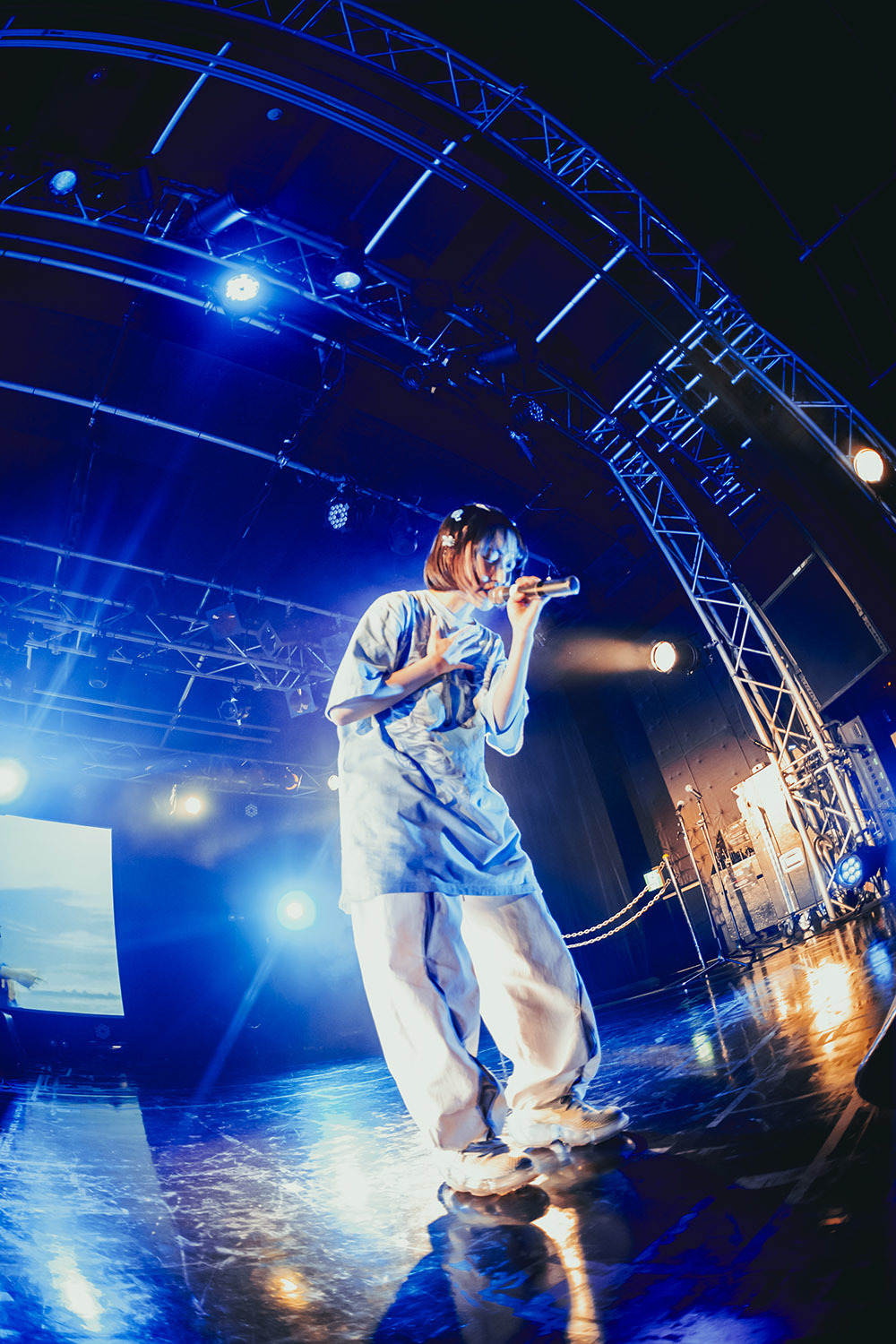 そう告げて披露したのは「Monochrome」。優しいトラックに憂いある声を乗せると、その姿をスポットライトが優しく照らし出す。ここまでの三曲で全く違った魅力を提示した彼女、その多彩さに感服せずにはいられない。