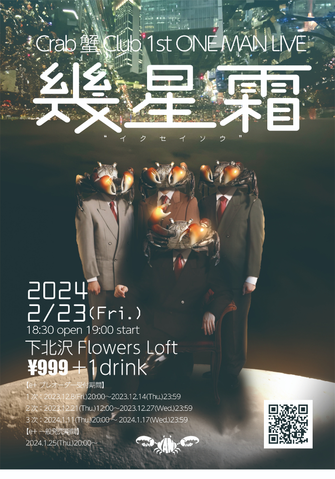 Crab 蟹 Clubのワンマンライブ『幾星霜』が2024年2月23日(金)に東京・下北沢Flowers LOFTで開催されることがわかった。