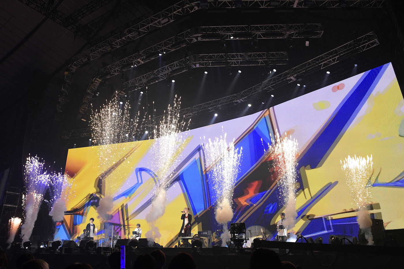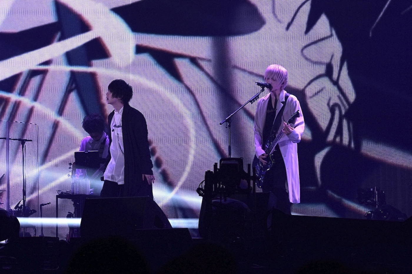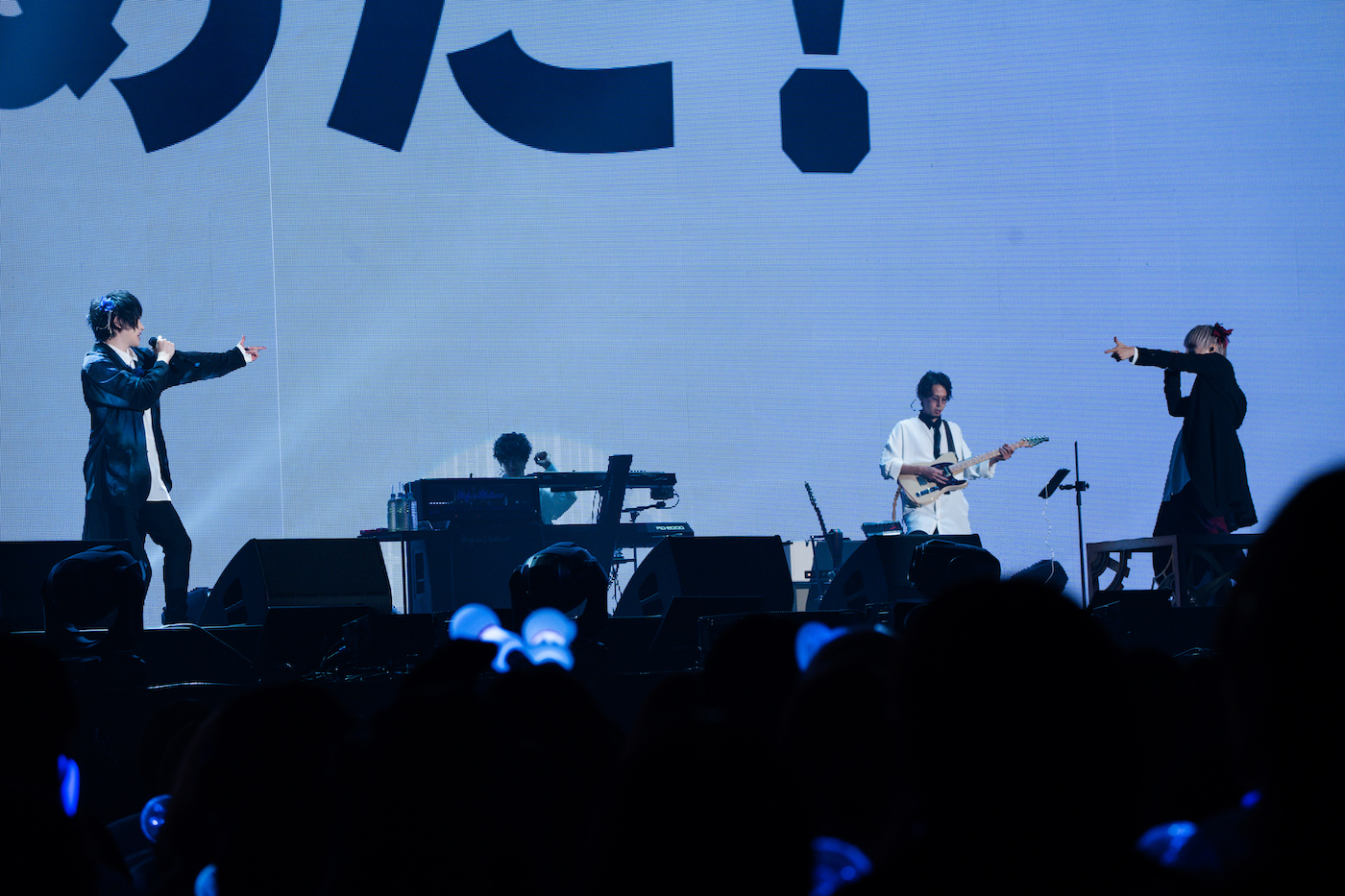 かと思うと、赤のライトとレーザー光線が飛び交った「レッドスプライト」では、途端にアグレッシブモードに。愁い色をたたえてお互いに見つめ合って歌う姿も印象的だった「モア」。ネオンサインきらめくサイバーパンクな映像を背にファンキーに突き抜けた「東京クローン」。収録順に放たれていく『アイムユアヒーロー』の楽曲たちの豊かな色彩、それをライブで増幅させるふたりの歌声の絶妙なコントラストと尽きない表現欲に、あらためて驚かされる。合いの手コールやリアクションから、よほどアルバムを聴きこんできたのであろうことがひしひし伝わる観客の熱量もまた凄まじい。