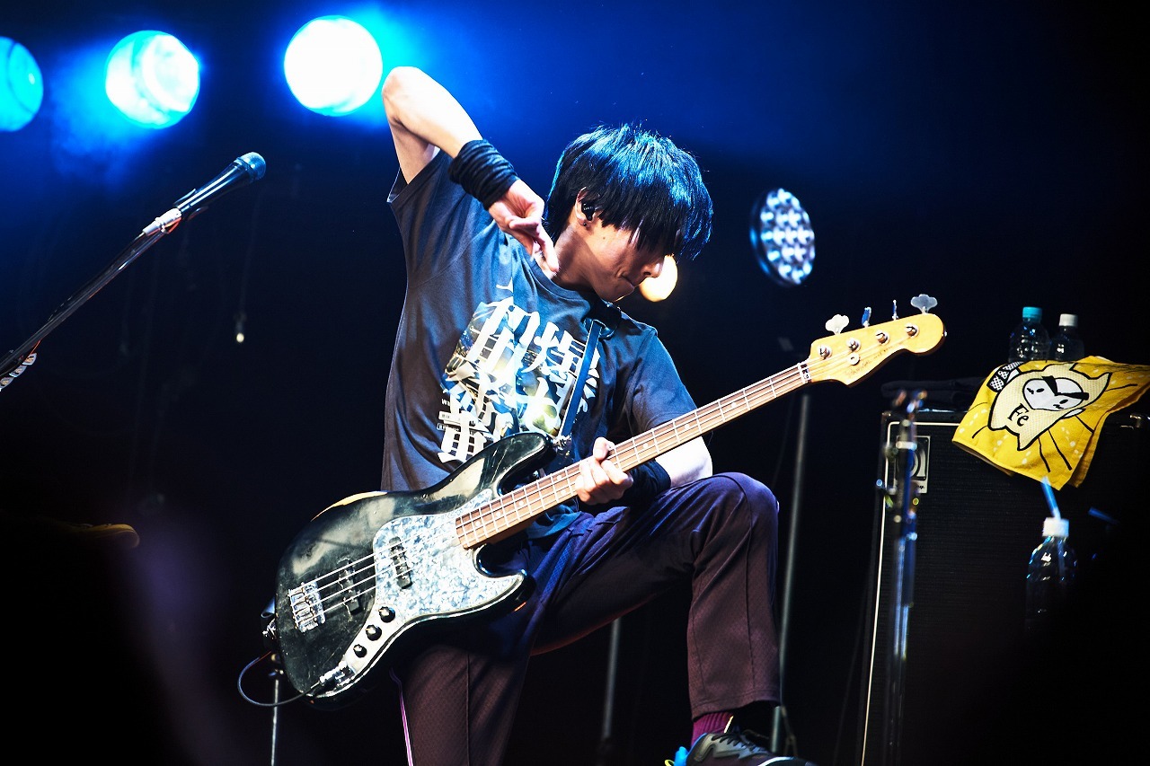 「爆ぜる初期衝動」と銘打たれたツアータイトルが示す通り、SEが鳴り響く中、高井淳(Ba)、貳方孝司(Gt)、杉本善徳(Gt)、田澤孝介(Vo)の順にメンバーが登場すると、バンドが一斉に楽器を掻きむしる音と、田澤の煽りボイスからライブがスタート!Waive最初期のナンバー「assorted lovephobia」でその幕を開けると、その後もバンド結成初期の楽曲を中心に、次々とフロアに熱を注ぎ込んでいった。