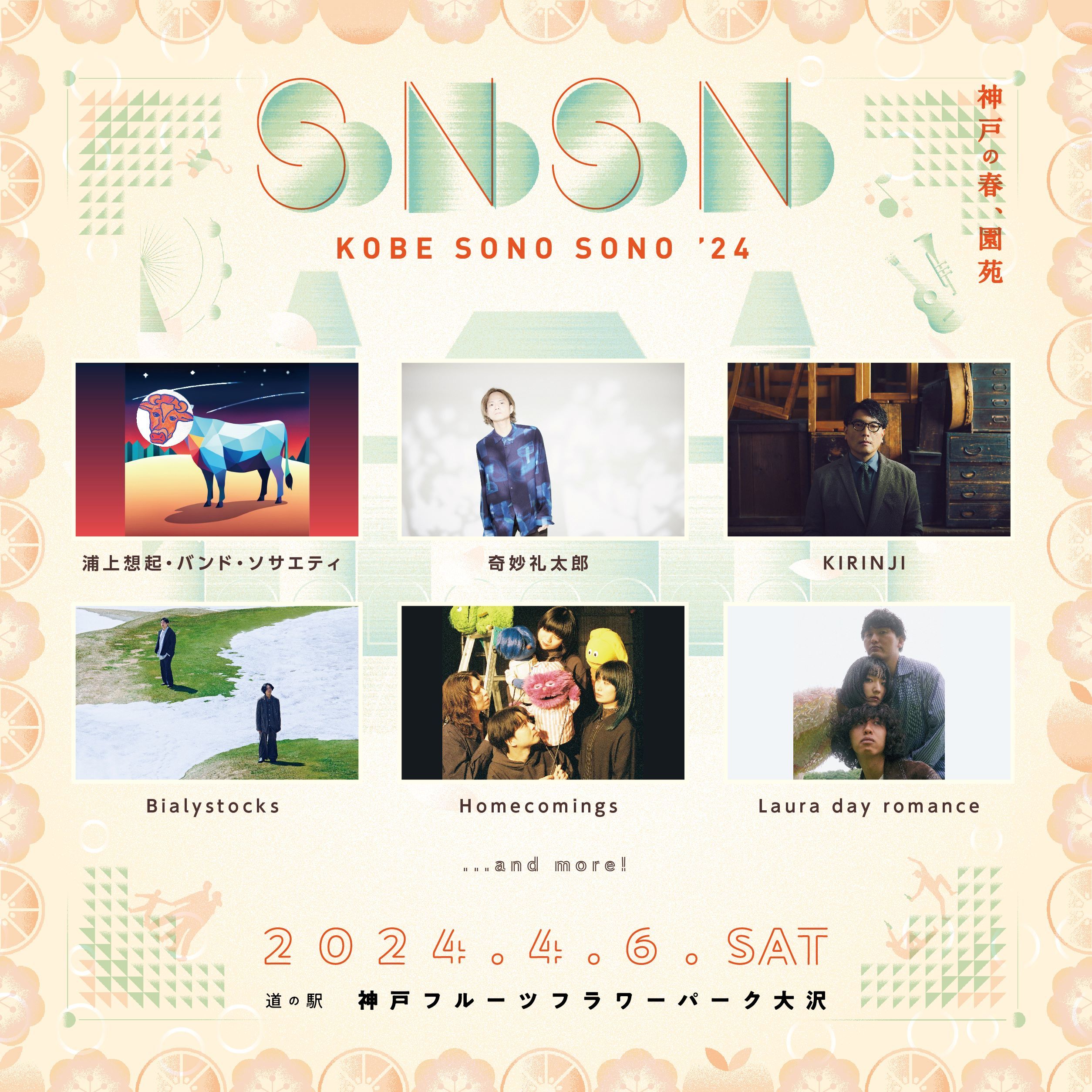2024年4月6日(土)、道の駅 神戸フルーツ・フラワーパーク大沢にて開催される『KOBE SONO SONO ‘24』の第1弾出演アーティスト6組が発表された。