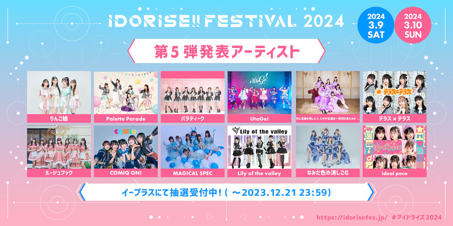 2024年3月9日(土)・10日(日)の2日間、東京・渋谷にて開催される『IDORISE!! FESTIVAL 2024』の第5弾出演アーティストが決定した。