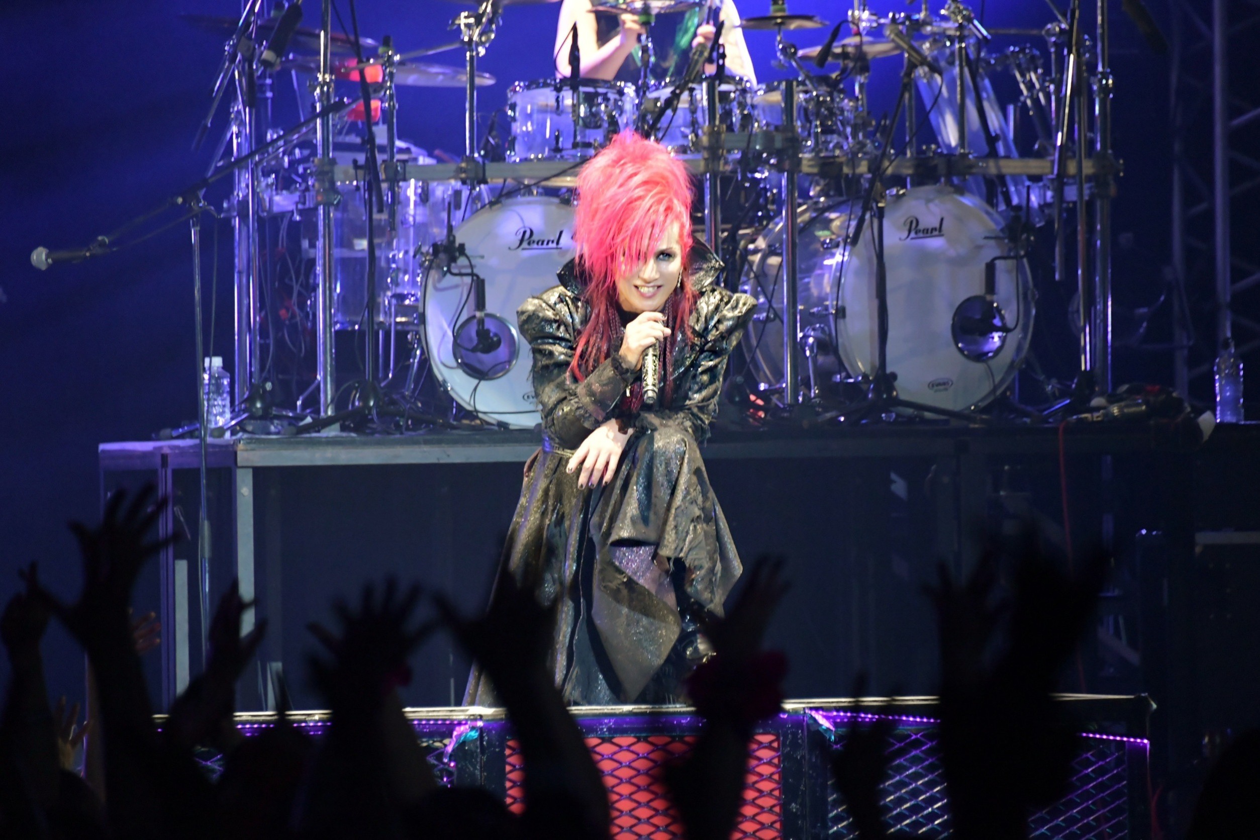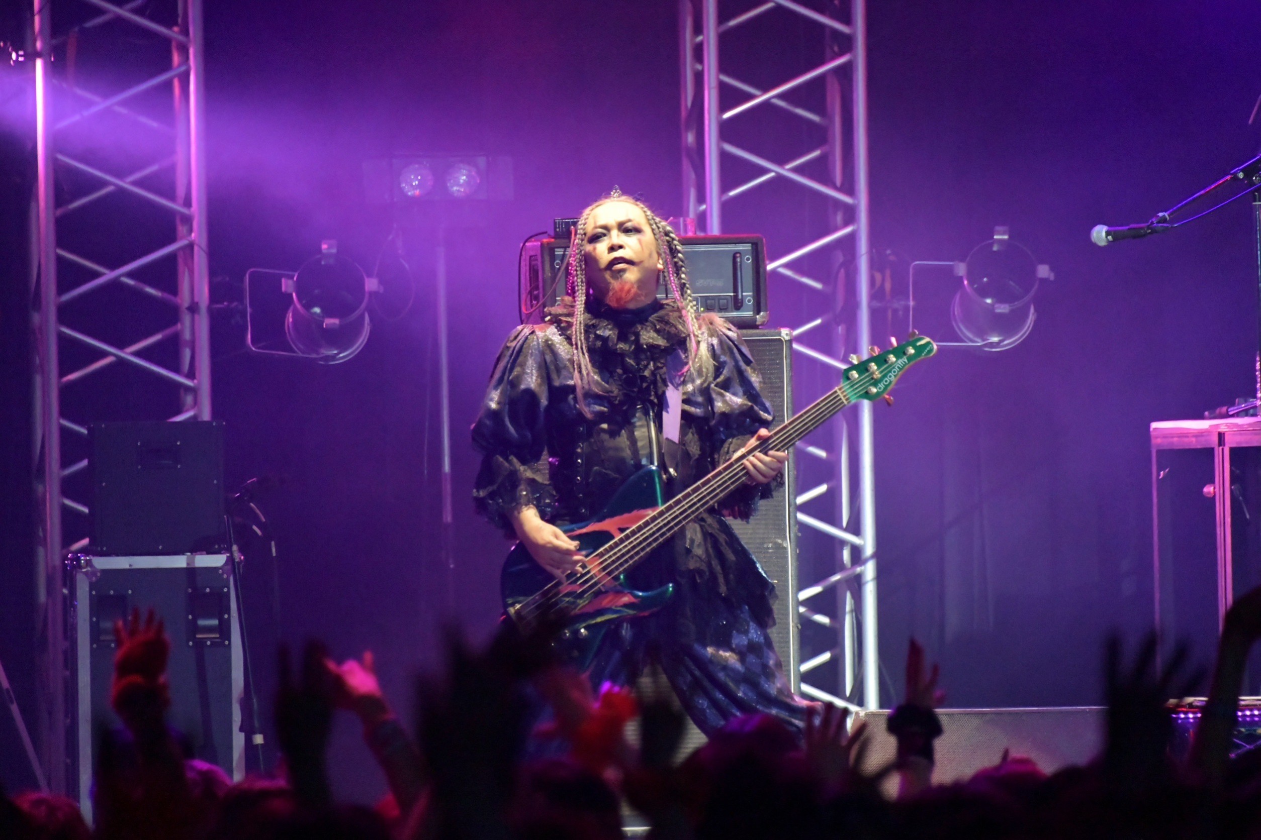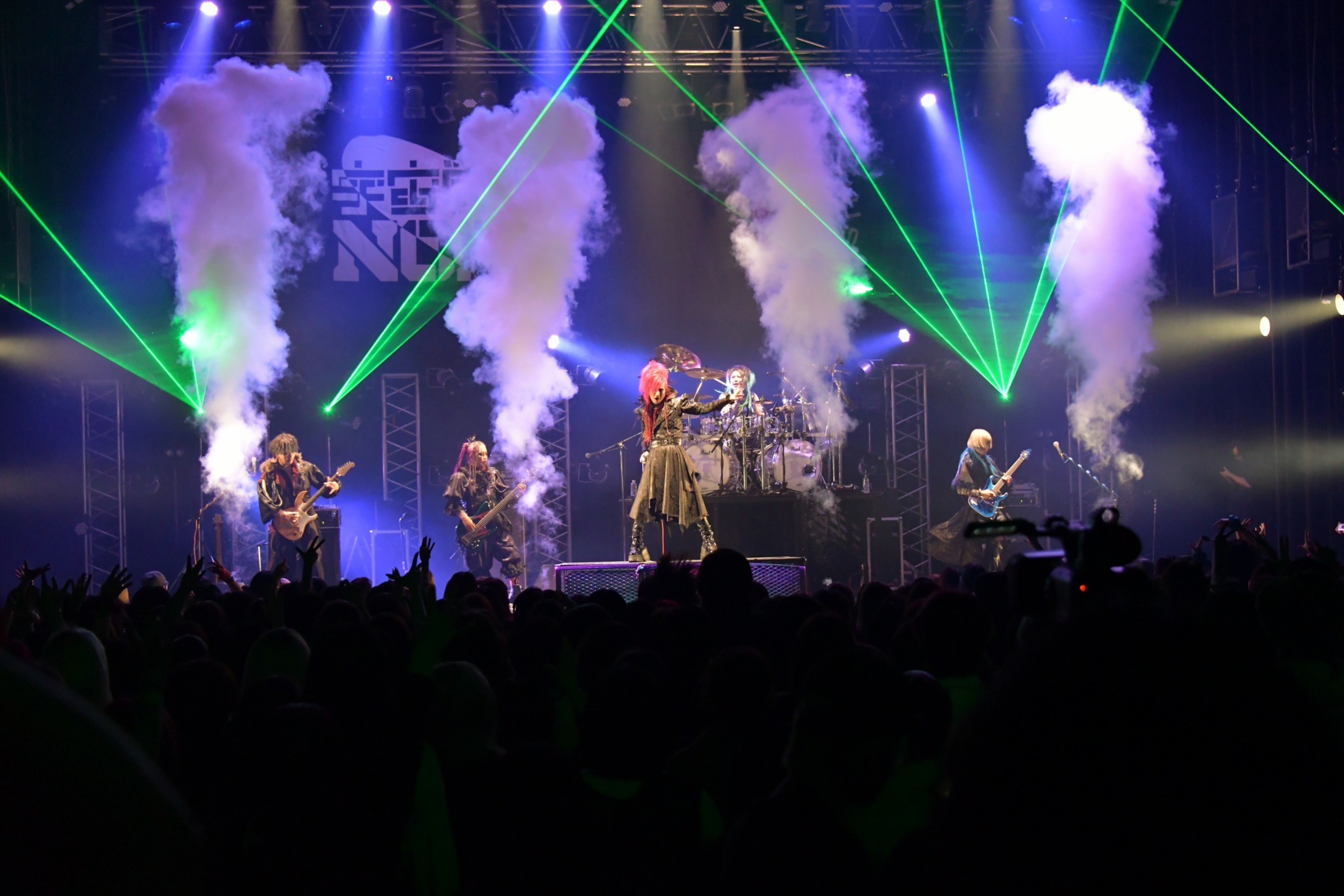 メランコリーと激情が見事に融合した「THE PARADOX IN IDEOLOGY」は、スモークとシャウトとヘドバンとジャンプで大騒ぎ。「踊れるかい?」と叫ぶTAKAの煽りに応えて、全員が踊りまくる四つ打つダンスチューン「Ritardando」。七色にまたたく、YAMATOのドラムに仕込まれたLEDライトがまぶしい。そしてラストチューンはスペイシーな浮遊感と壮大な空間の中で、トランシーなビートに導かれて踊りまくる「METEORS」。これが最後。手を上げてくるくる踊るオーディエンス。くるくるとギター回しの妙技を披露する呼太郎。「愛してるぜ川崎ベイベー!」と叫ぶTAKA。誰もが笑顔の中でラストはお馴染みの決めポーズ、一人ずつステージを去る姿に大歓声が鳴りやまない。すごい熱気だ。
