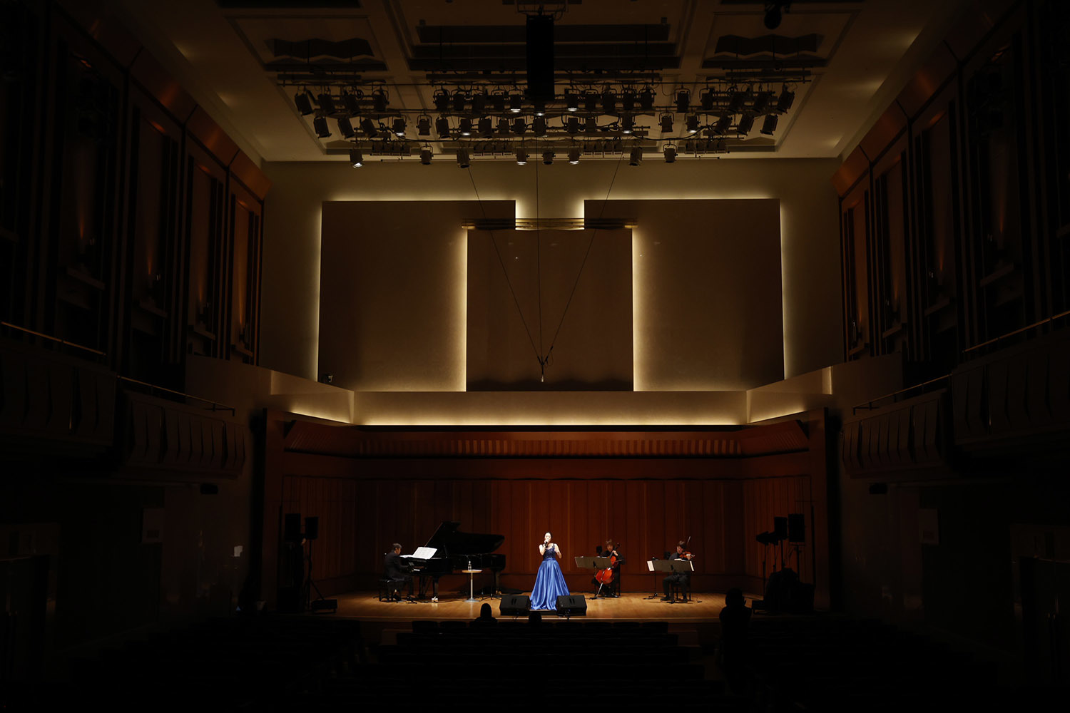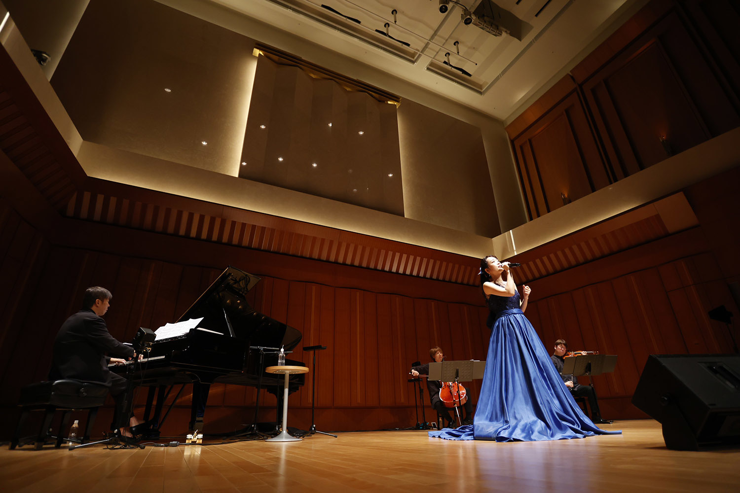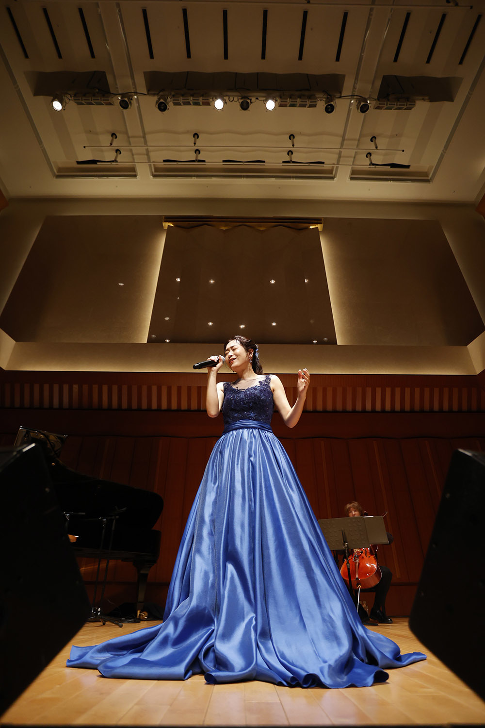 本番前の取材会にブルーの華やかなドレスで登場したWakanaは「私のパーティーに皆さんが楽しんで参加できるようなコンサートにしたいと思ってタイトルをつけました。今年リリースしたアルバムからはもちろん、カバー曲も含めていろんな曲で皆さんに楽しんでいただける夜にしたいと思っています」とにっこり。年末恒例となったクラシックスタイルのライブに「ピアノ、バイオリン、チェロという編成になるんですがリズムを 4人で全部作っていくっていう世界になるんですけど、それが1番私は難しいなと感じているし、やりがいと、1番の醍醐味かなとも思います」と力強くアピール。
