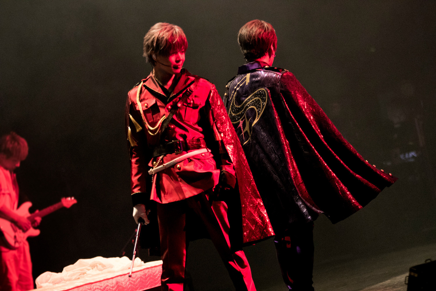 「おいおまえら、今のが精一杯か?」「だったらがっかりだ!」「ルールを追加する。俺たちが警棒を上げたら声出せ!」と命じた「罰ゲーム」では、志麻リス(志麻ファンの呼称)、坂田家(あほの坂田。ファンの呼称)が全力でコール。「PLATONIC GIRL」では<Stop!><Sit Down!>が大きく響いて、ドSモードな志麻とあほの坂田。も思わず「いいね!」と笑顔を見せる。「レクイエム」ではマントを翻し向き合って美声を重ねた2人、相変わらず好相性すぎる。