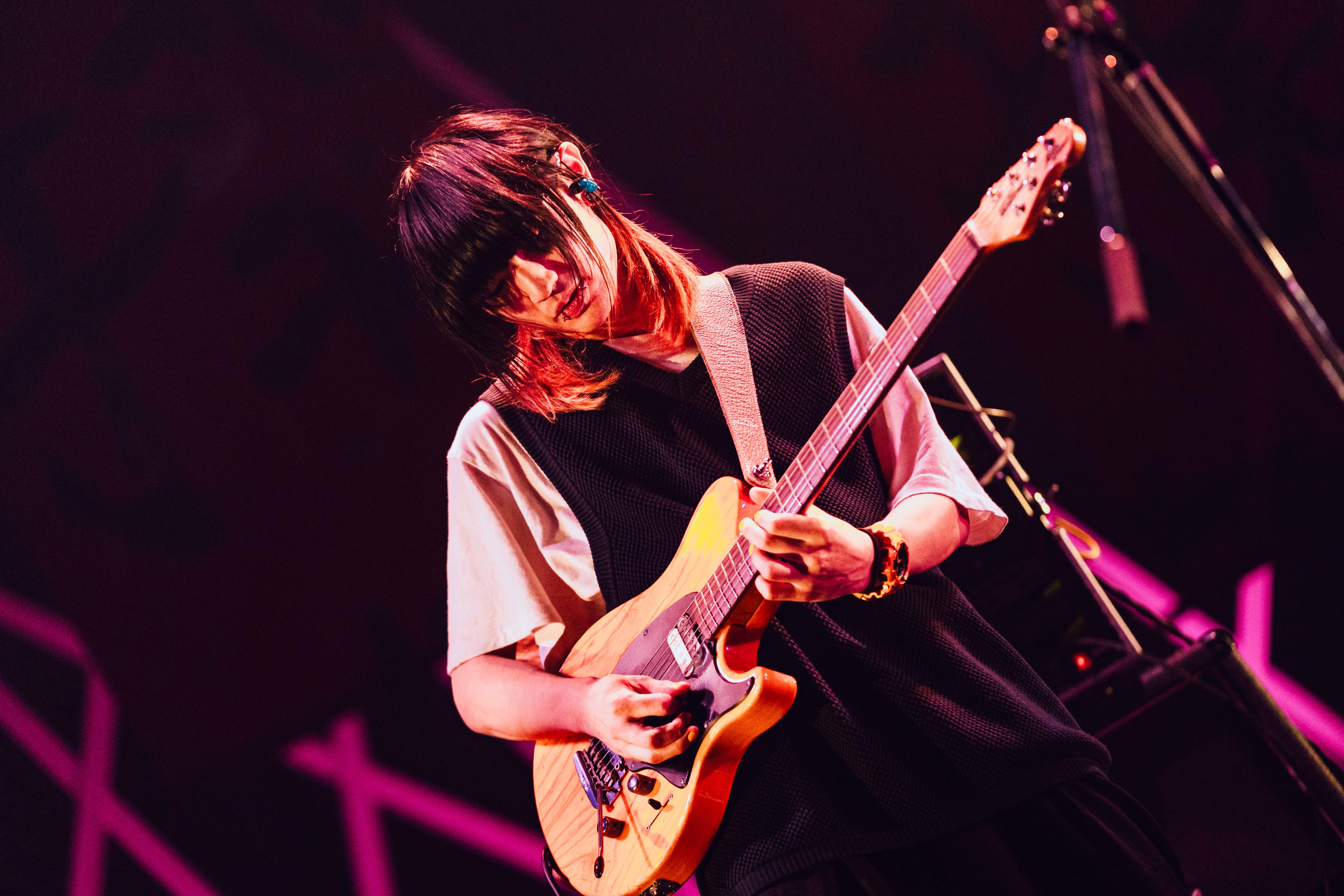 ここまでほんの数曲、既に驚きの連続だが、1番の変化を感じたのはくぅの存在感だ。「今夏を経てライブの質が上がった」と本人も話しており、もちろんバンド全体のスキルや経験値による成長も感じたが、「フロントマン・くぅ」としてのオーラが格段にレベルアップした。よく伸びる歌声やどっしりとした佇まい、キレのあるプレイからはある種の潔さを感じて目が離せなかった。場の空気を牽引する力が備わり、魅力が増した。