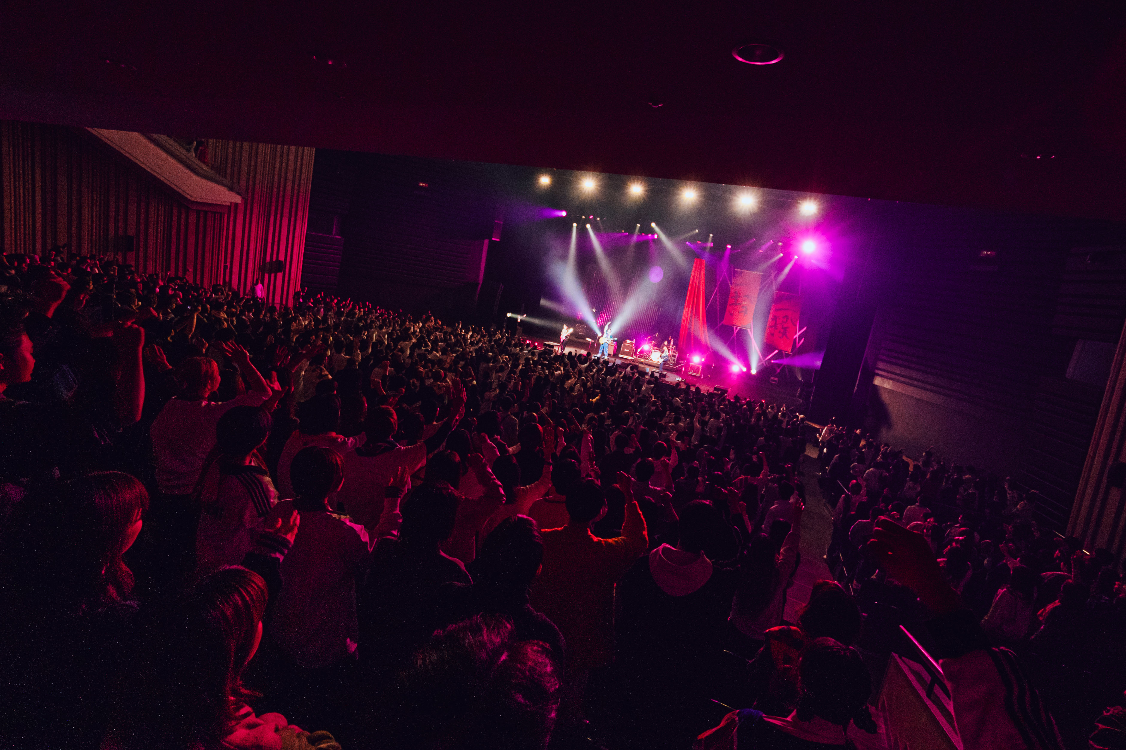 秋も深まる祝前日のこの日、オリックス劇場にはNEEとMr.ふぉるてのタオルを持ったファンが大集合していた。本イベントは関西のイベンター・GREENSの企画によるもので、昨年春に『Bayside Shakedown TOUR』として、ドミコ、the dadadadys、w.o.d.、ナードマグネット、CRYAMY、PK Shampooというラインナップで、東名阪でイベントツアーを行ったが、今回はその第2弾。タイトルは企画したS氏がドラマ『踊る大捜査線』が好きなことに由来する。ロビーには、同作品をオマージュしたビジュアルフラッグが吊るされていた。