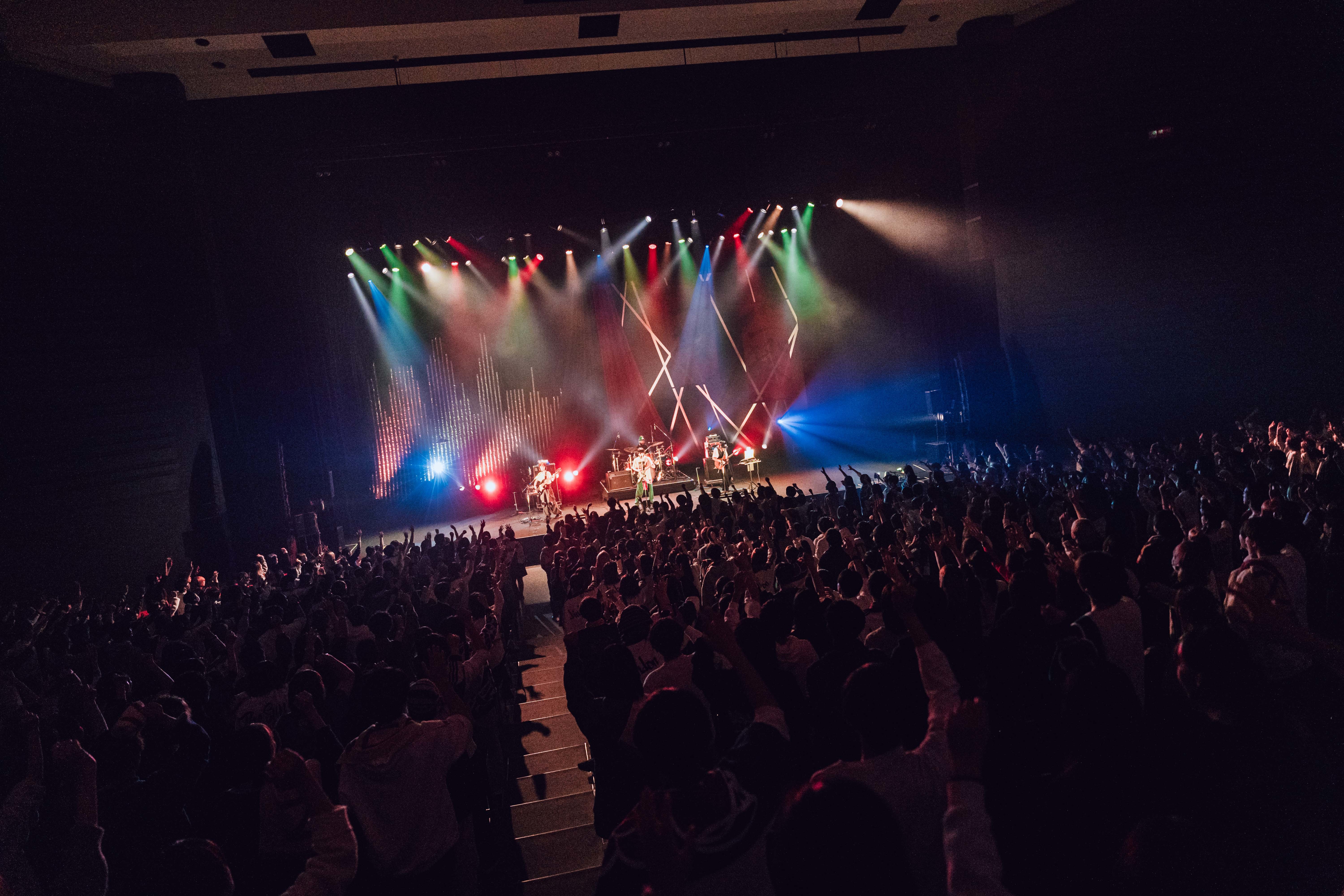 本編に戻り、阿坂が初めて作曲を手掛けた「promenade」をプレイ。ギターの聴きどころが満載のダンサブルなナンバーで、阿坂のギターソロと福岡のスラップが光るアウトロは最高にカッコ良かった。そのままシームレスに「シリウス」へ。同期も使ってキャッチーかつ壮大に響かせると、最後に稲生は地声で「ありがとう!」と叫んだのだった。