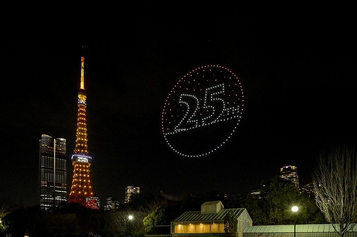 また終演後には、東京の街を『ライオンキング』色に染めるイベントが行われ、東京のシンボルである東京タワーを『ライオンキング』カラーにライトアップ。隣接する増上寺上空では25周年記念特別ドローンショーを実施し、本作のモチーフや25周年を迎えた感謝のメッセージが東京の空を彩った。