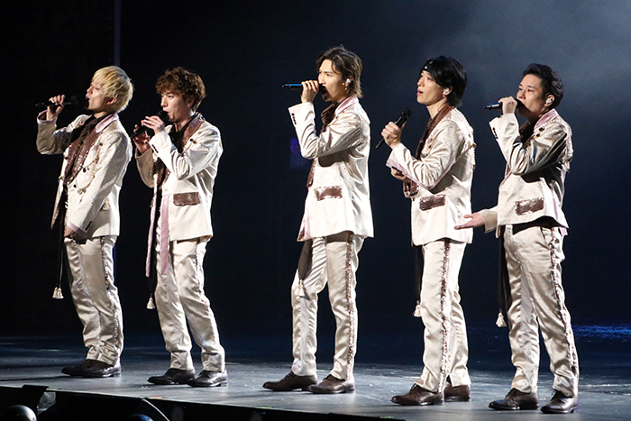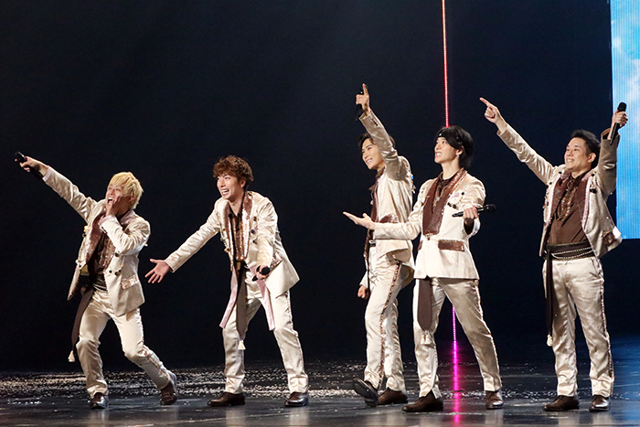 特別カーテンコールの1曲目は「明日の為に僕がいる」。優しくまっすぐな歌声で5人のハーモニーを響かせる。歌い終えた後の噛み締めるような表情が印象的だった。曲について語る五関の「これは(橋本)良亮以外の4人に……」という言葉を受けて河合が「もう4人になってるじゃん(笑)」と拗ねるなど、明るいノリに客席からも笑い声が。五関は改めて「A.B.C.に良亮が入ってA.B.C-Zになって初めての曲。節目で歌ってきたね」と振り返り、塚田も「思い出の曲」としみじみ頷いていた。