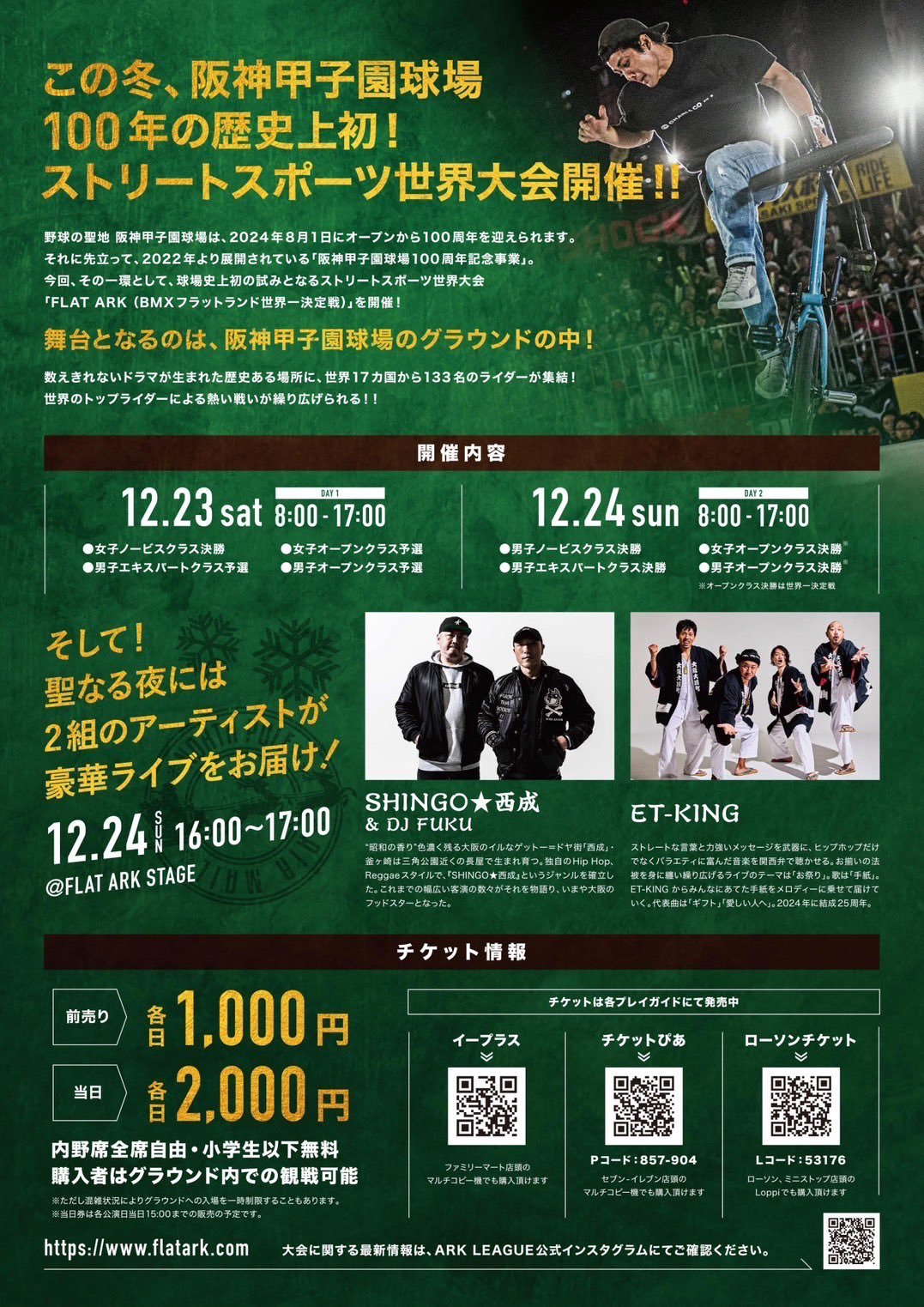 BMXフラットランドの世界大会『FLAT ARK 2023 in 阪神甲子園球場』が12月23日(土)・24日(日)、阪神甲子園球場(兵庫県)で開催される。
