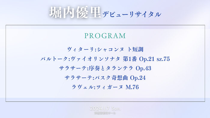 1月7日開催『堀内優里 デビューリサイタル』曲目