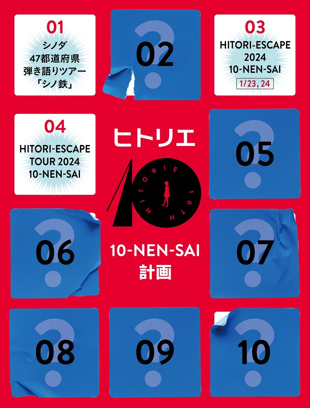 ヒトリエがメジャーデビュー10周年ベストツアー『HITORI-ESCAPE TOUR 2024 10-NEN-SAI』を2024年4月より開催することを発表した。