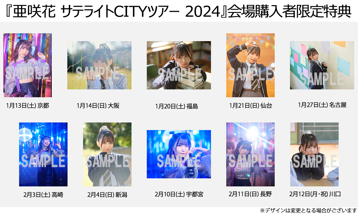 そして1月13日(土)からスタートする、全国10都市を巡る亜咲花初の全国ツアー『亜咲花 サテライト CITYツアー 2024』の会場にて「わやわやわー!」を予約、または購入で、各箇所で異なるボイスメッセージ付きの亜咲花撮りおろし写真を使用したトレーディングカードがプレゼントされる。