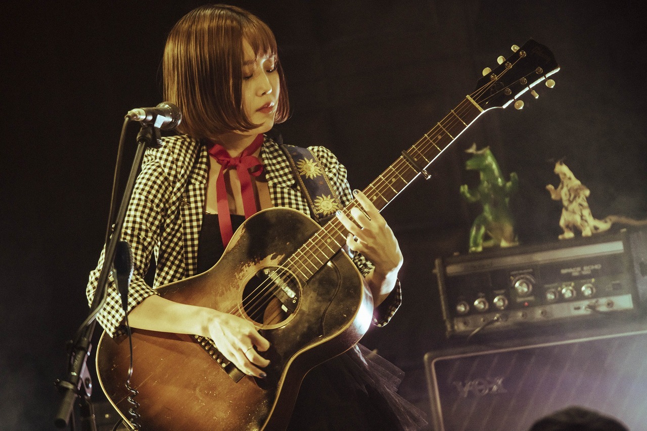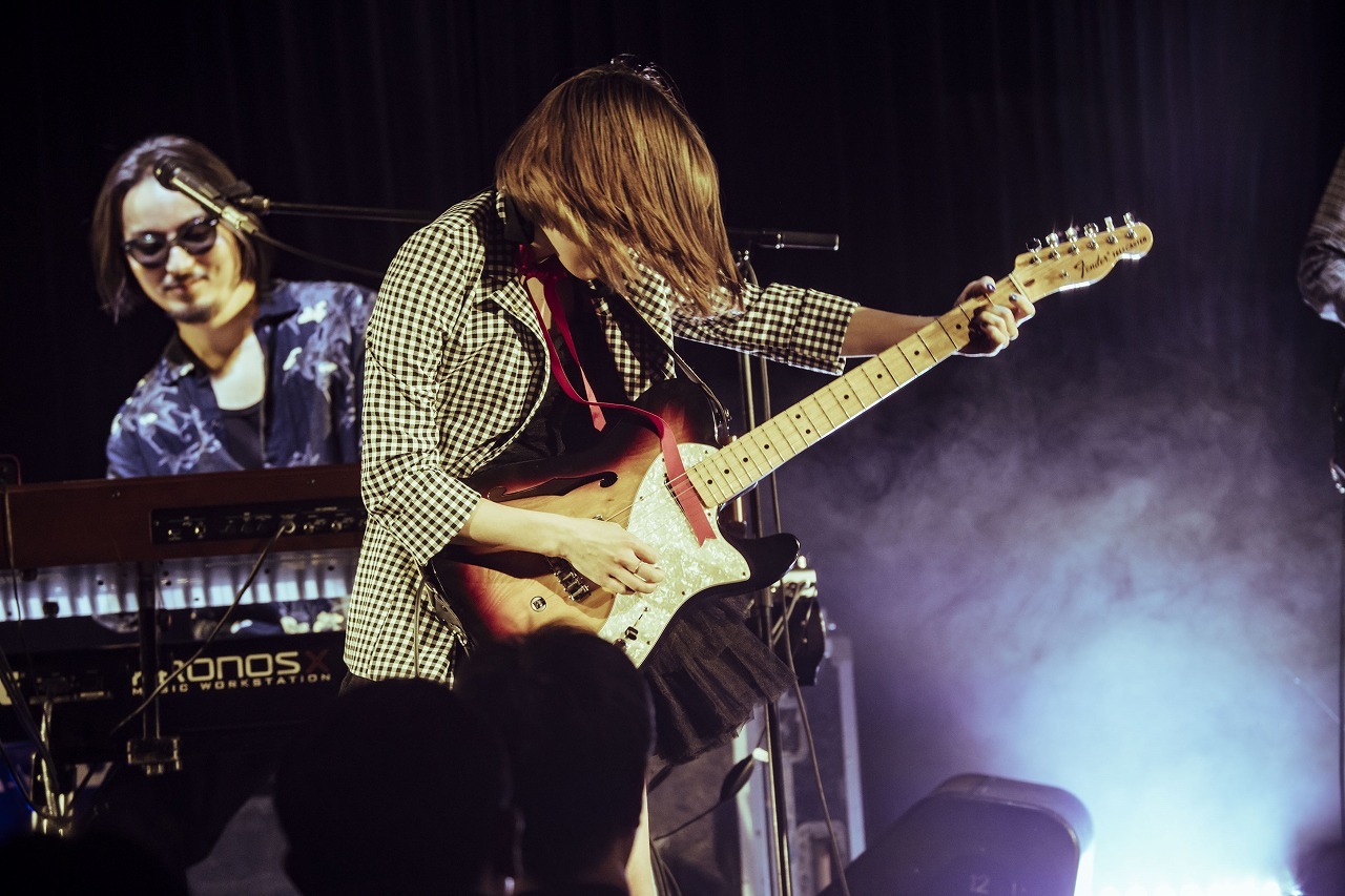 三浦のベースで始まった続いての「Categorizing Me」は、とりわけこのメンバーだからこそのアレンジが効いた1曲だった。寄せては返す静かな波のような音展開と鍵盤から出されるフルート音が新味となっていた。ライブの度にアレンジが変化する曲ではあるが、このメンバーでのそれはこれまで聴いてきたものと相当感触が違っていて、それゆえに間奏のReiのギターソロもこのときだけのエモーションが表れていた。弾きながら心の声に耳をすまし、それをまたギター音にして鳴らすRei。こんなにもその日その時の感情が赤裸々に表れる曲はほかにないかもしれない。だから胸が熱くなる。