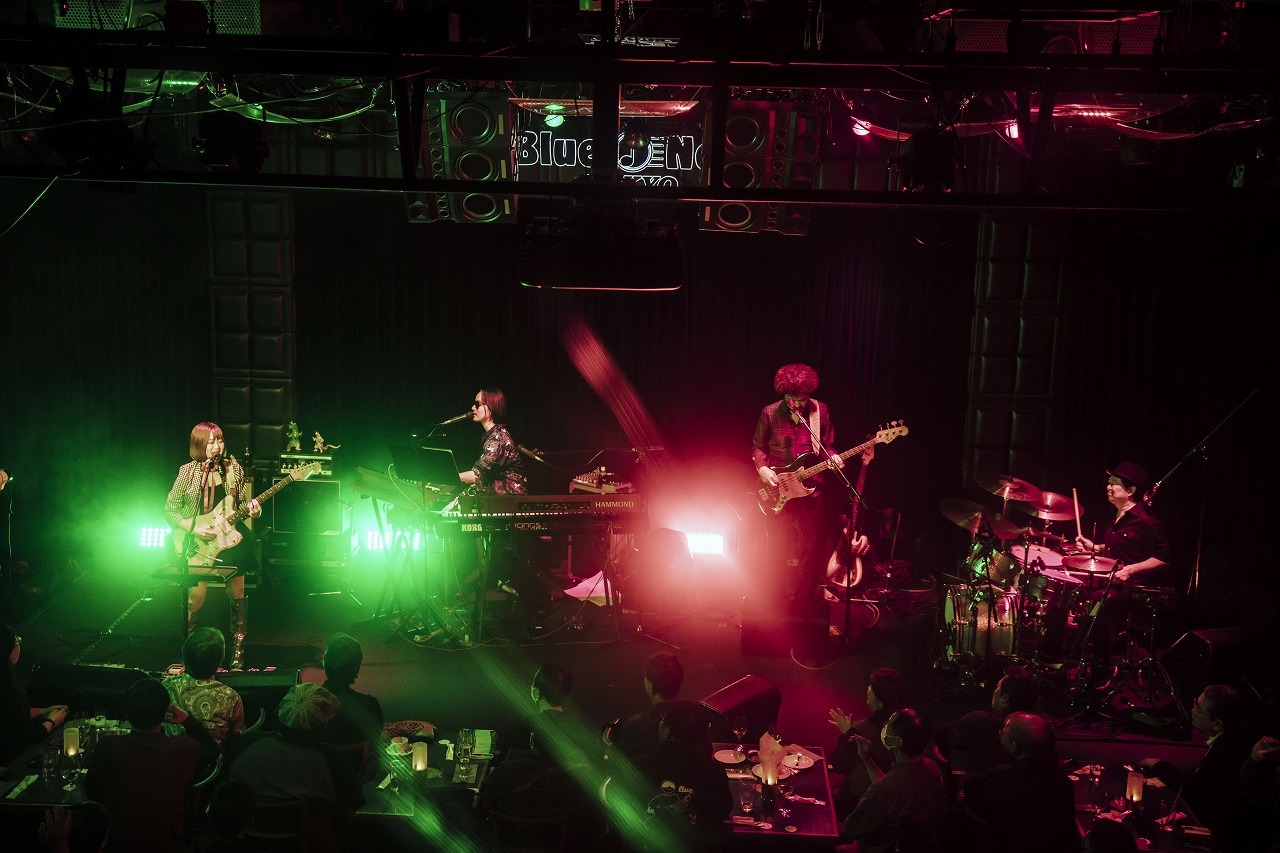 ライブは2022年のアルバム『QUILT』の最後に渡辺香津美とのコラボ曲として収められていたインストナンバー「CACTUS」でスタート。音源にはなかったTAIHEIの鍵盤音でしっとりめに始まり、Reiのギターはジャジーながらもここからライブが始まるウキウキした気分を表わしていた。ブルーノート東京というハコにもよくマッチしたオープニングだ。