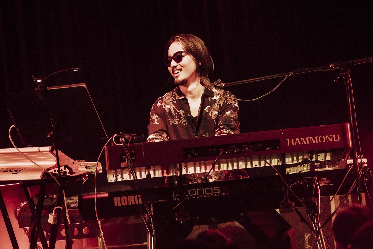 そんな開幕から一転、2曲目で早くも「Lonely Dance Club」、3曲目で「ORIGINALS」と、昭和の歌ものムードもある熱量高き曲を続けて叩きこむ。Reiはメンバーたちの表情をよく見ながらプレイ。こう来たらこう行くといったセッションの醍醐味がそこにあり、まだ始まったばかりだというのに白熱した音のラリーが展開された。そしてロックスターよろしくサングラスをかけたReiはフライングVに持ち替えて「New Days」をお見舞い。間奏のギターソロをカラダを折り曲げながら弾き、TAIHEIも鍵盤音をフリーな感覚でそこに混ぜ入れた。