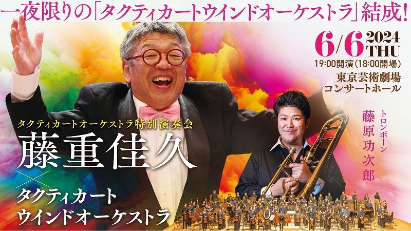 2024年6月6日(木)東京芸術劇場コンサートホールにて、『タクティカートオーケストラ特別演奏会 藤重佳久×タクティカートウインドオーケストラ』が開催されることが決定した。