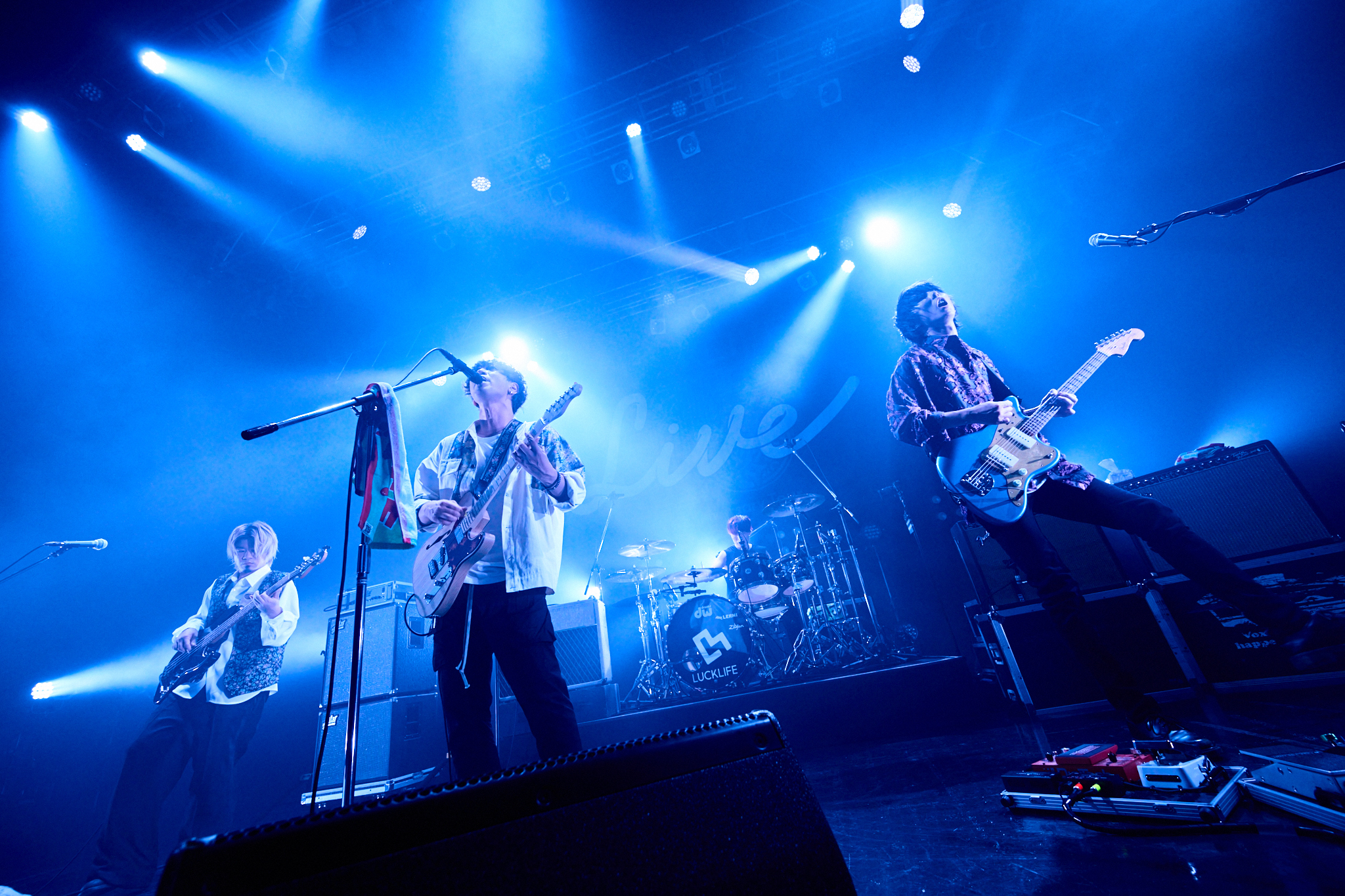 「俺らの音楽があなたに届いてなんか元気になってもらえたり、なんか支えられたり……音楽の力なんて“なんか”でいいと思うねん。それは“絶対”やから。あなたがそう感じたらそうやねん。そういうバンドであり続けたい。あなたの一番そばにいたい。そうあることが俺らの幸せです。あなたがいるから世界は回るんやで。あなたがいるから俺は歌えるんやで。死にたくなったらライブハウスに来いよ。死にたくなくてもライブハウスに来いよ。しょうもないこと言って、嬉しい顔してライブハウスで生きていきましょう!」――PONが想いを語ってから披露された「ファンファーレ」が本編を締めくくった。「歌ってみ。元気になるで」と呼びかけられた観客は、全力で大合唱。発射された金色と銀色のテープを握り締めたたくさんの人々の歌声は、昂揚感を滲ませつつも穏やかだった。「生きて、その先でまたライブハウスで会いましょう! ラックライフでした!」という言葉を残し、ステージを後にした4人。彼らを爽やかな歓声が見送った。