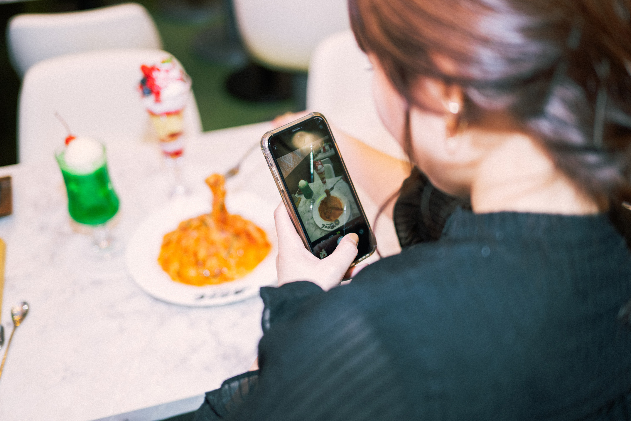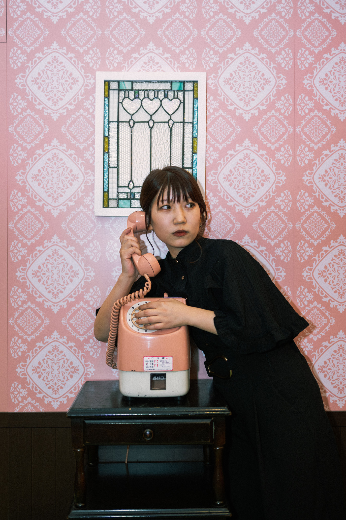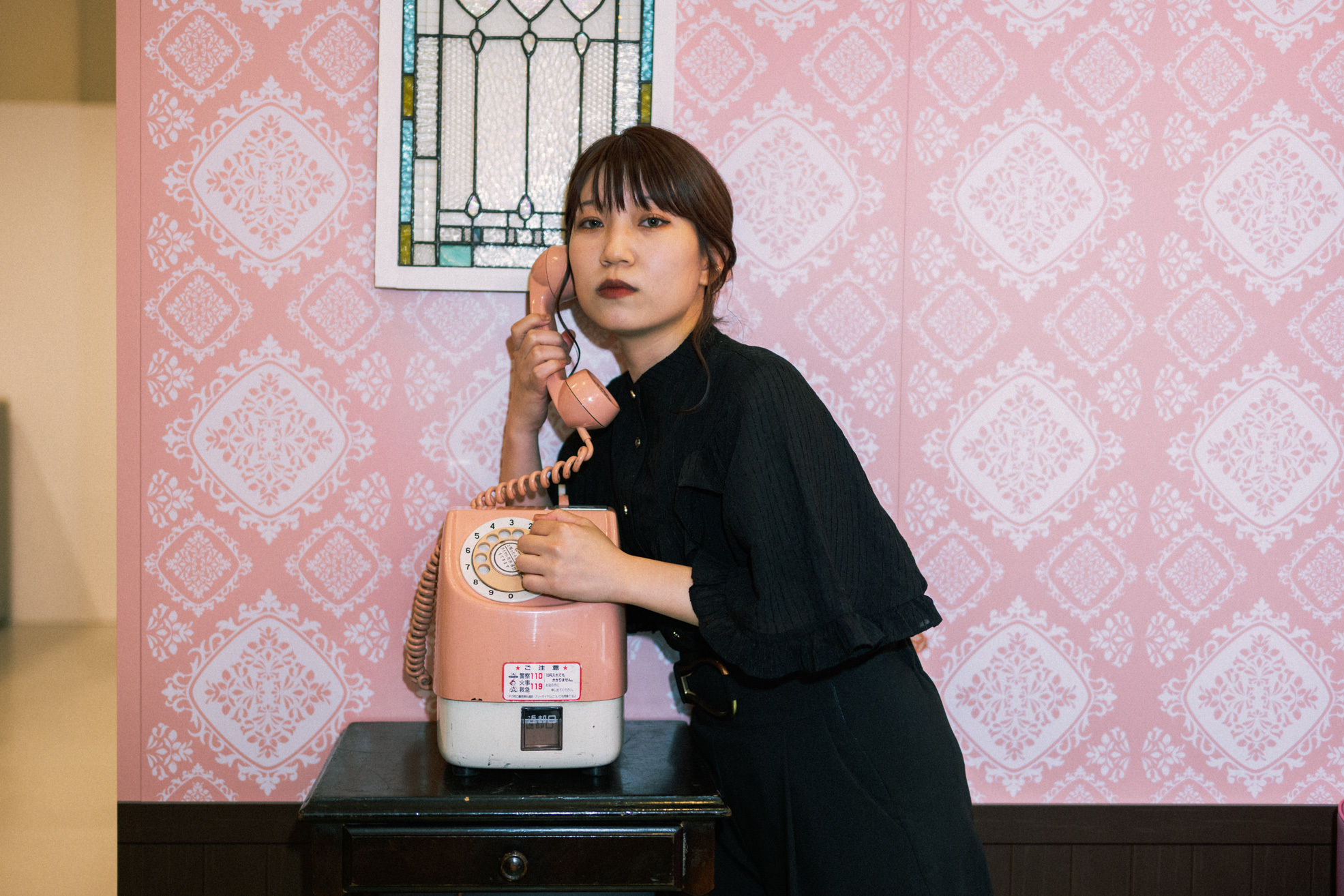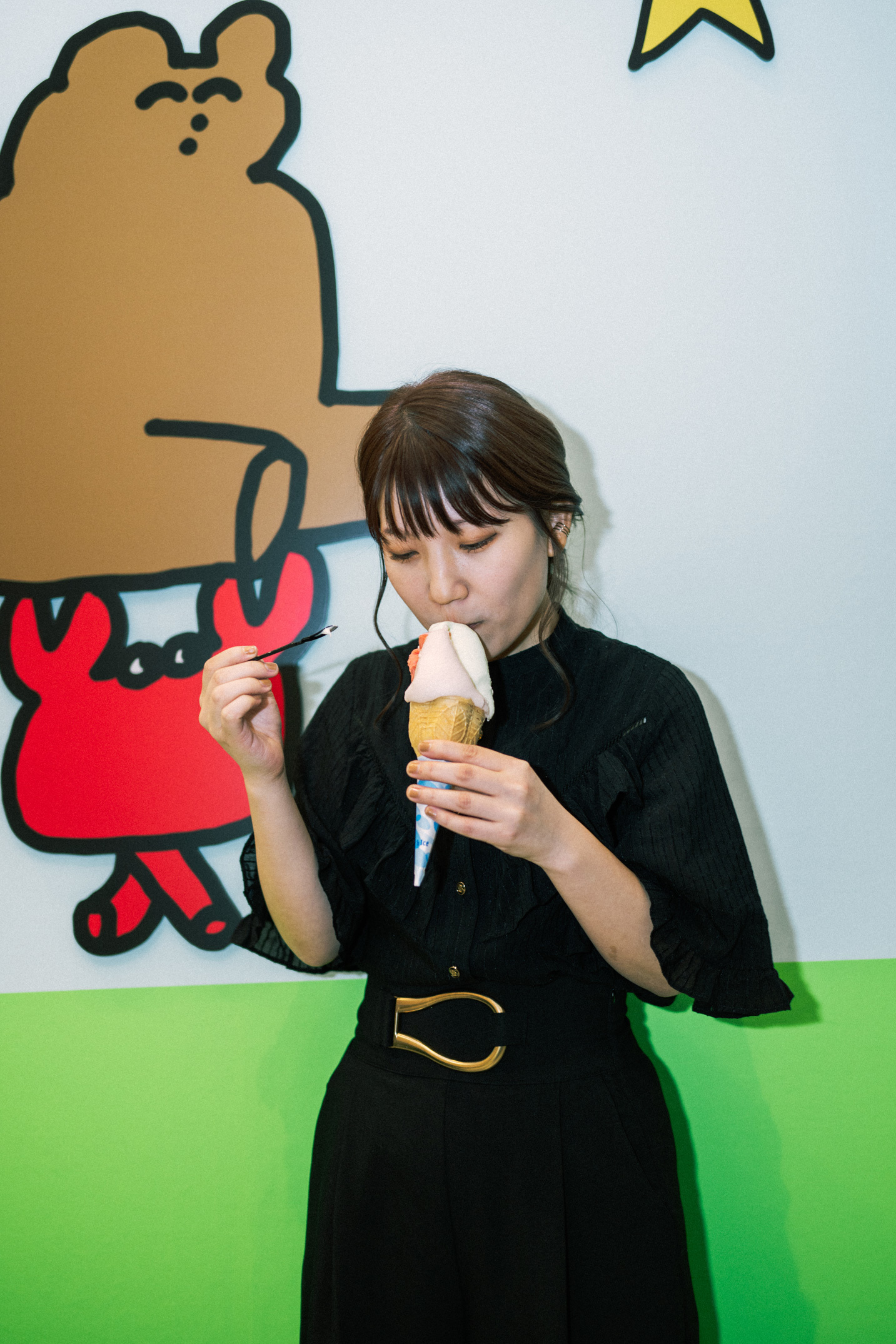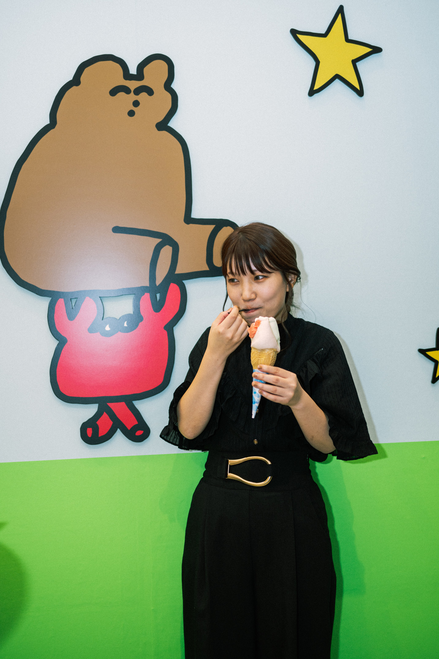 喫茶店を模したフォトブースでは、机に並べられたクリームソーダやナポリタンなど定番メニューのサンプルと記念撮影するMikan。日本のカルチャーが大好きで、音楽やお笑いだけでなく、レトロな純喫茶にも詳しく、展示されている名物喫茶の写真を指差しては「ここも行ったことあります!」とテンションアップ。「台湾にも古いお店はあるけれど、こうやってひとつの文化になるぐらい変わらず今も残っていて、レトロなままずっと愛されているところがすごいです!」と台湾との違いについても話してくれた。
