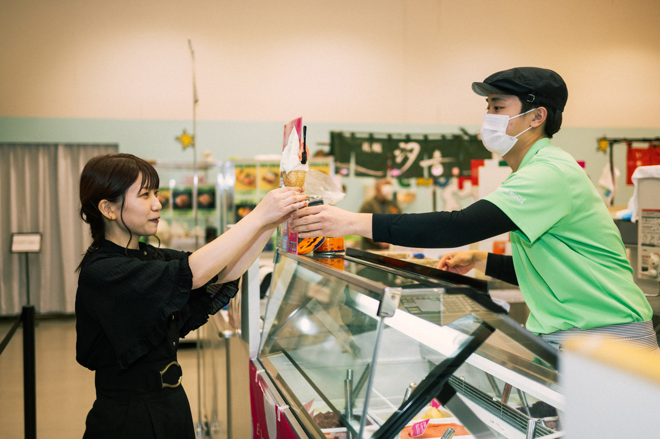 「純喫茶ファッジ in PARCO」のすぐ隣で開催されていた、北海道の物産展『どさんこ FOOD JAM』へ。会場内には、実演販売の海鮮丼にボリューミーなジャンボいかめし、北海道産の素材にこだわったジェラートや定番人気のお土産などがずらりと並ぶ。FM北海道のラジオ番組『スパクル!!』で台湾について紹介していることもあり、実は北海道に馴染みがあるMikan。台湾では北海道観光&お土産が人気だそう。台湾でも日本のお菓子が売られていることもあるが、「北海道限定味」は現地でしか買えないため特に喜ばれるそう。