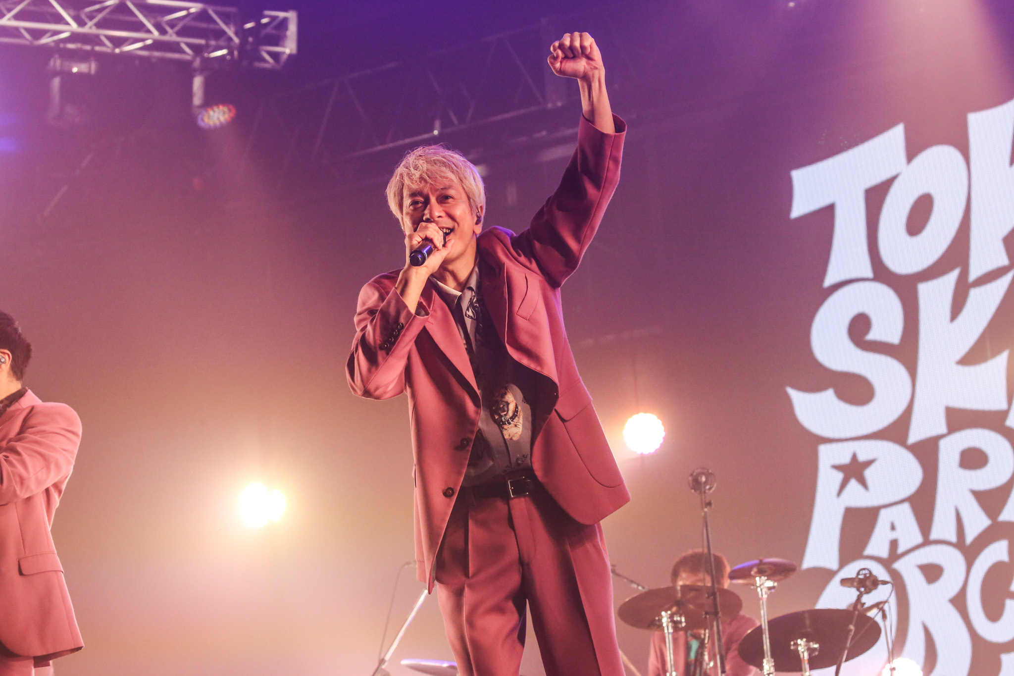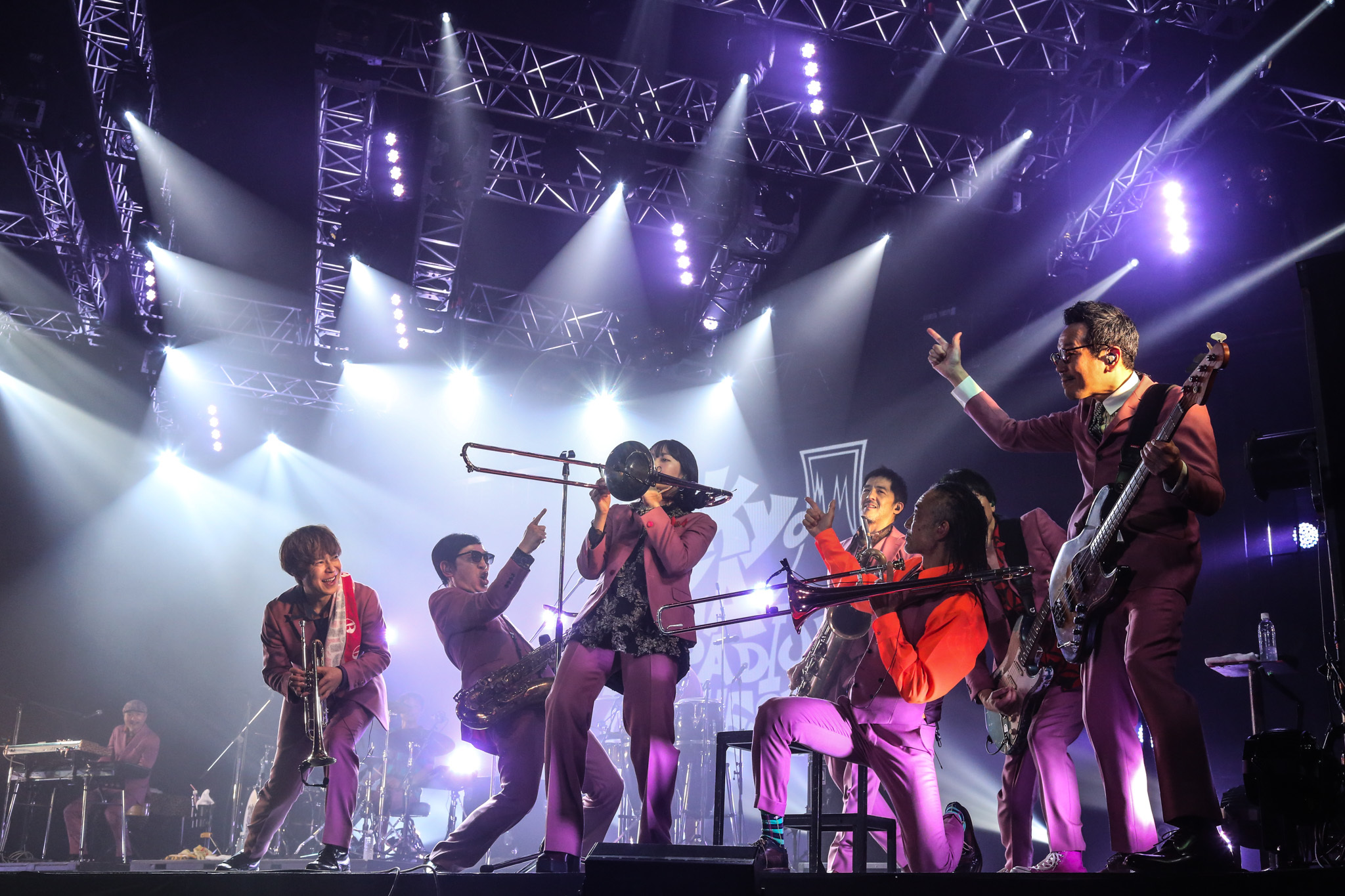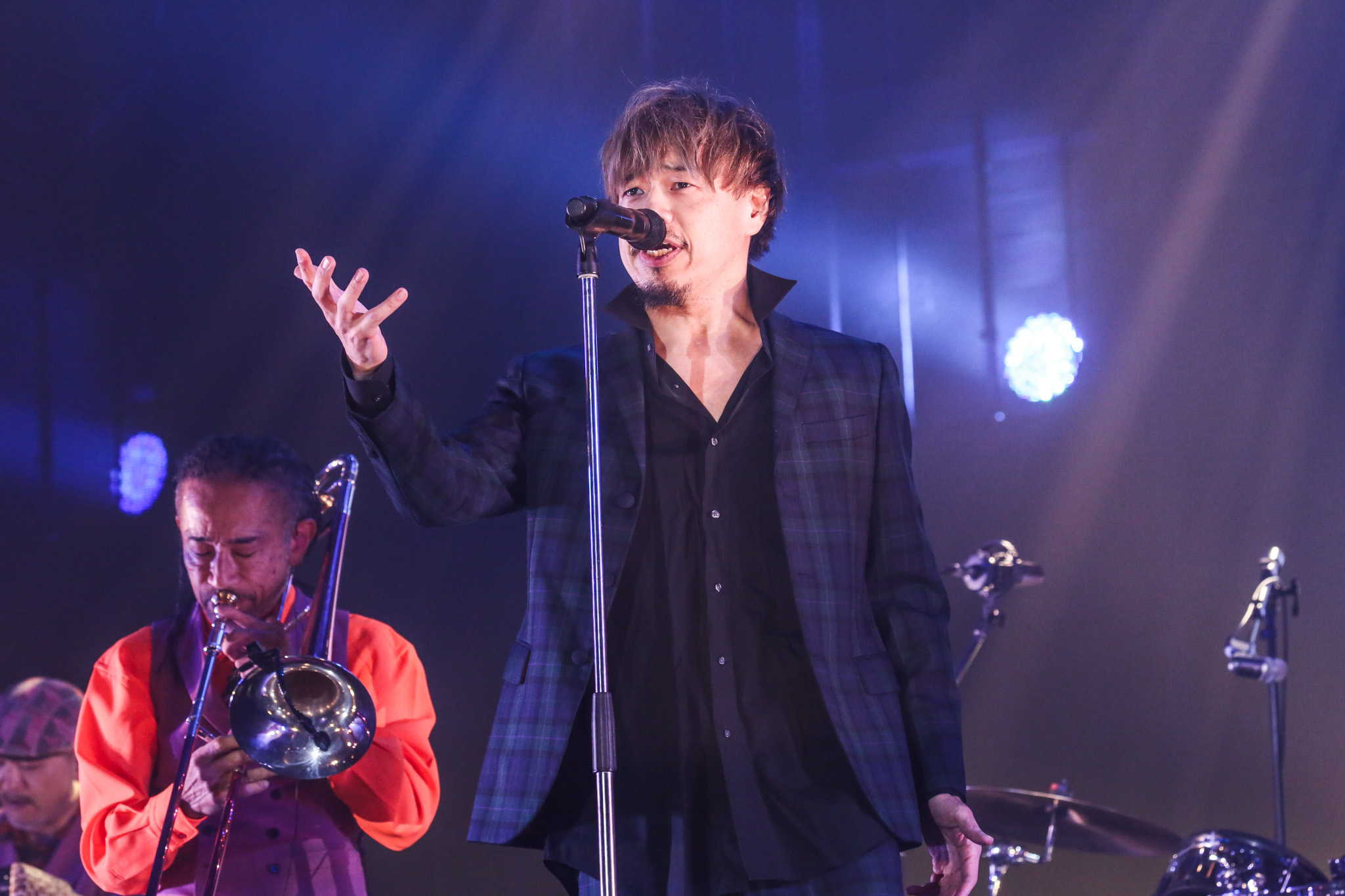 さらに、この11月に逝去したThe Birthdayのチバユウスケ(Vo.Gt)を偲び、ラストソングにはチバをフィーチャリングに迎えた「カナリヤ鳴く空」を据えたスカパラ。ゲストボーカルには何と10-FEETのTAKUMA(Vo.Gt)が現れた。「チバさんが参加したのはスカパラのゲストものの初期で。その最新型が晴ちゃん、TAKUMAさんも渋い歌声を聴かせてくれて、ある意味邦ロックの歴史を垣間見たような時間になったね」(飯室)と、すさまじい密度のひとときを語ってくれた。