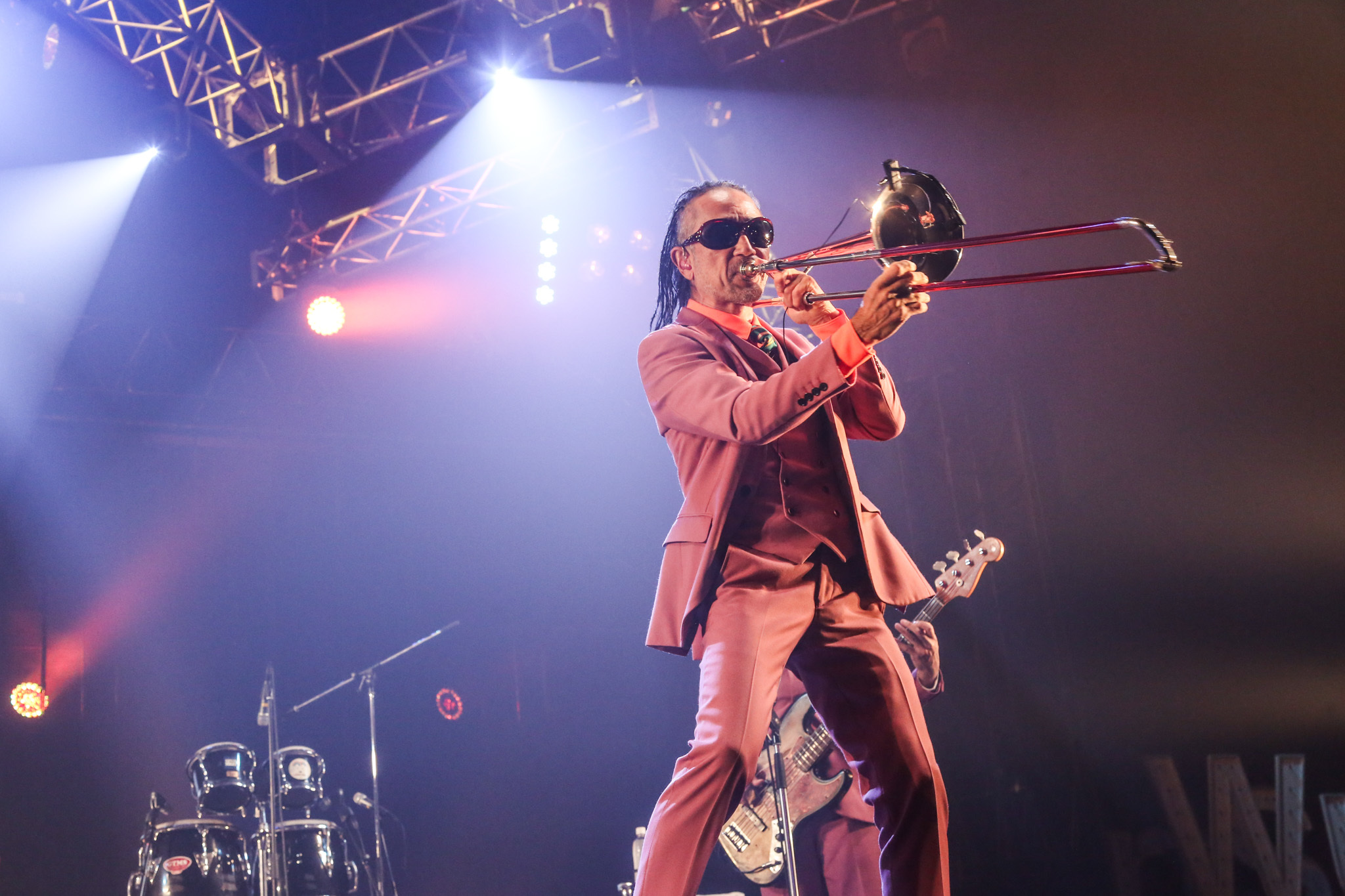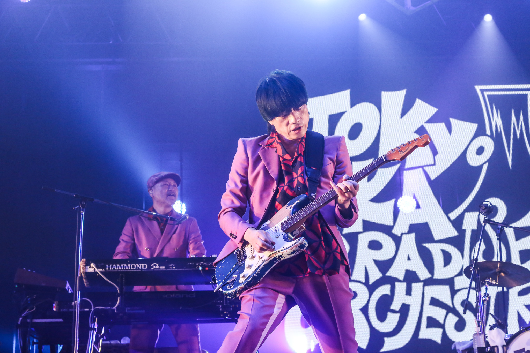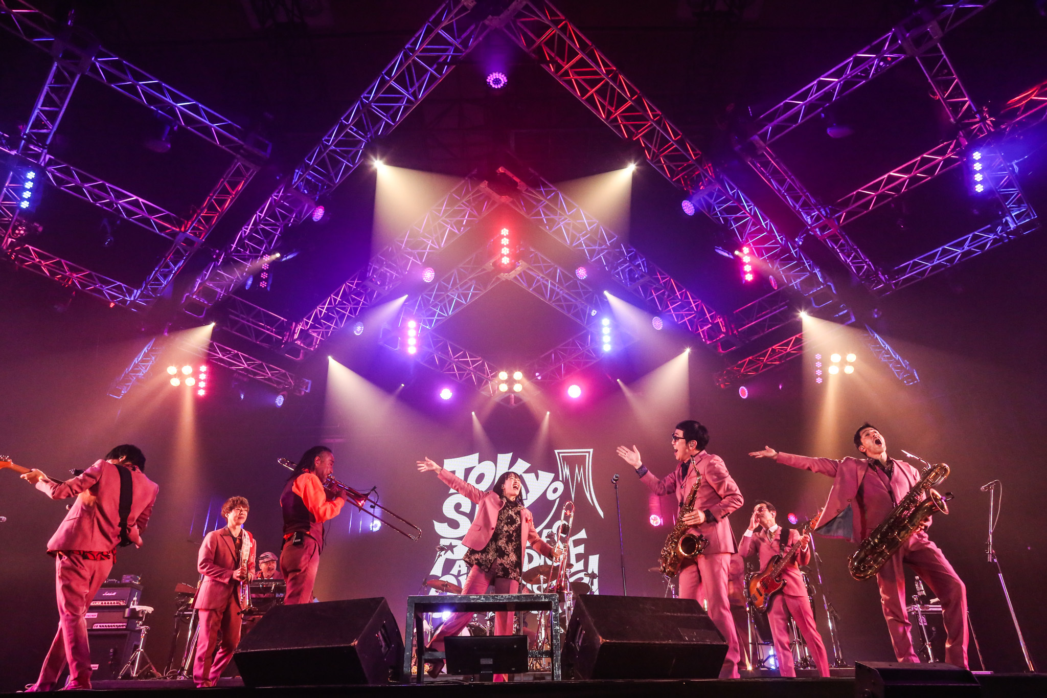 さらに、この11月に逝去したThe Birthdayのチバユウスケ(Vo.Gt)を偲び、ラストソングにはチバをフィーチャリングに迎えた「カナリヤ鳴く空」を据えたスカパラ。ゲストボーカルには何と10-FEETのTAKUMA(Vo.Gt)が現れた。「チバさんが参加したのはスカパラのゲストものの初期で。その最新型が晴ちゃん、TAKUMAさんも渋い歌声を聴かせてくれて、ある意味邦ロックの歴史を垣間見たような時間になったね」(飯室)と、すさまじい密度のひとときを語ってくれた。