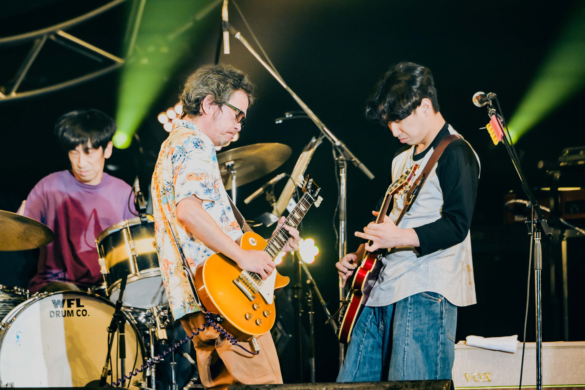 ロックキッズはもちろん、ファミリーなどさまざまなオーディエンスが集ったL-STAGEにはKroiがお出ましに。「本当にKroiのお客さんの年齢層は幅広いよね」(飯室)と話すと、「Kroiの音楽が共通言語なんでしょうね」(豊田)と返す言葉には激しく同意。「あんなデッカいステージで好きなことばっかりやってて、自分たちのグルーヴが完全に出来上がってる。あの波に乗っかったらもうあとは楽しいだけ!」と飯室も大満足の時間となったよう。ちなみに、内⽥怜央(Vo.Gt)のサイケデリックなセットアップは「おばあちゃんの手作りらしいですよ」(飯室)とのプチ情報に、「情報量がすごい(笑)!」(豊田)と場が沸いたひとときに。
