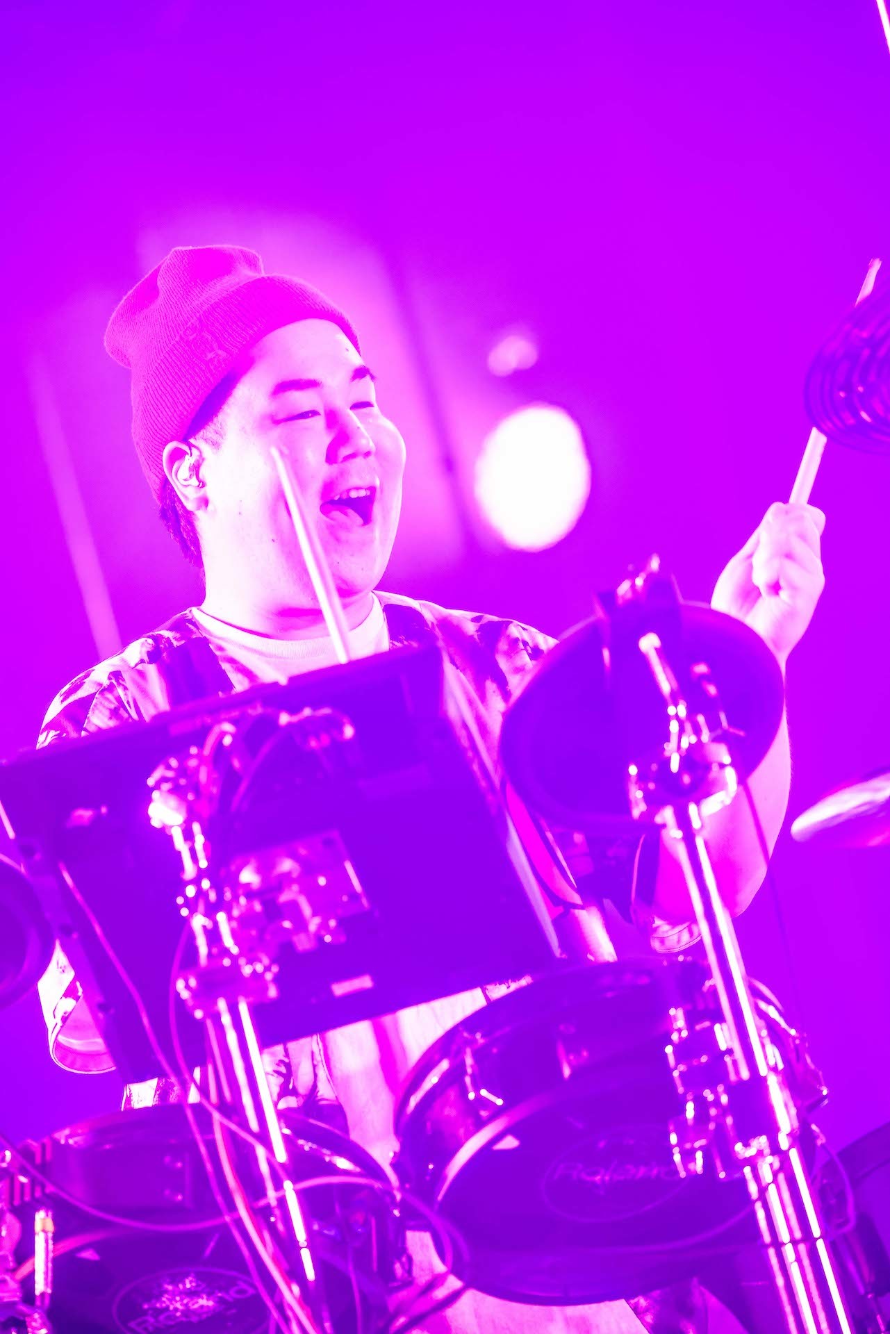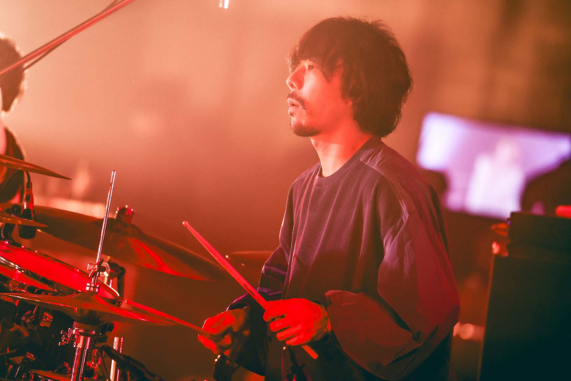 「3人の匠の技が光る、職人の集まり。圧倒的というよりもサーカスみたい」と、大抜が惚れ込んでいたのがUNISON SQUARE GARDEN。「田淵(田淵智也、Ba)くんはベースを振り回して足を上げて、ちゃんと弾いてんか? ってみんな思うんだろうけど、FM802のライブ音源を聴いたら、一音もミスらない。あれはすごい! 「シュガーソングとビターステップ」を最終曲にやったけど、(鈴木貴雄が)ドラムをほぼ立ちながら演奏してるけど手数が多いのに、リズムの核は崩さずに自分の感情で叩いるよね」(大抜)。「グルーヴがありますよね! ユニゾンのライブを観ていると、旧式の掃除機を思い出すんです。コードをビューっと引っ張って、ボタンを押すとシュシュっと片付くじゃないですか? 散らかっていっぱい広がっているけど、ボタンを押すと一瞬でシュン! キレイに戻る。そんなイメージがいつもあるんです」(板東)。「グルーヴを大事にしつつ曲は崩さず鳴らすから、それはなんか分かるな。今度それメンバーに言ってみたら?(笑)」(大抜)。