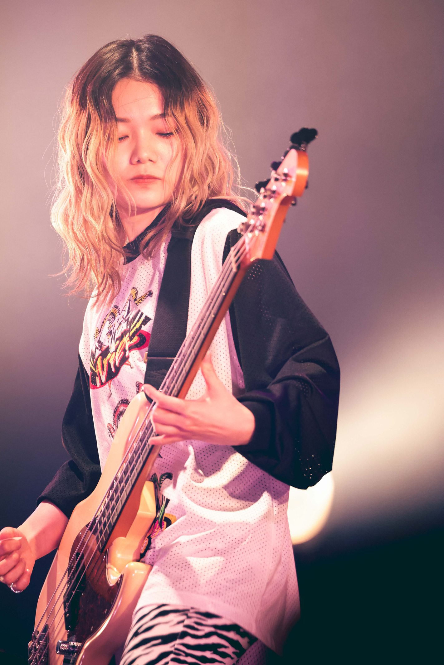 同じころ、加藤はR-STAGEでのw.o.d.を目撃。「初っぱなからロックンロールが炸裂! 歪んだギターやサイトウ(タクヤ、Vo.Gt)くんのビリビリくるような歌声も最高で、大好きだなと」(加藤)。落合もSHISHAMOを経ての後半から参戦できたそうで、「随所に赤いピンスポットライトが使われてたんだけど、めちゃくちゃ似合う。音楽とマッチしてたよね!」とステージ全体の様子も絶賛。そして、この日のハイライトの一つとしてTHEE MICHELLE GUN ELEPHANTの「スモーキン・ビリー」のカバーを披露したw.o.d.。去る11月に逝去した同バンドのボーカリスト・チバユウスケへの思いを託したセットリストに、「イントロが流れた瞬間から心が揺さぶられましたね。w.o.d.は、チバさんのDNAを受け継いでるバンドだなと思いながら聴いてたので」(落合)、「オーディエンスのみんなも拳をグッと握ってレスポンスしていて……」(加藤)、「そこにも思いがこもるんだよね。ザ・ロックバンドたる姿を見せてくれました。でもステージを降りるとまたギャップがあって」(落合)、「MCもゆるくて良かった!」(加藤)と、改めてw.o.d.の魅力にほれ直した様子の二人だった。