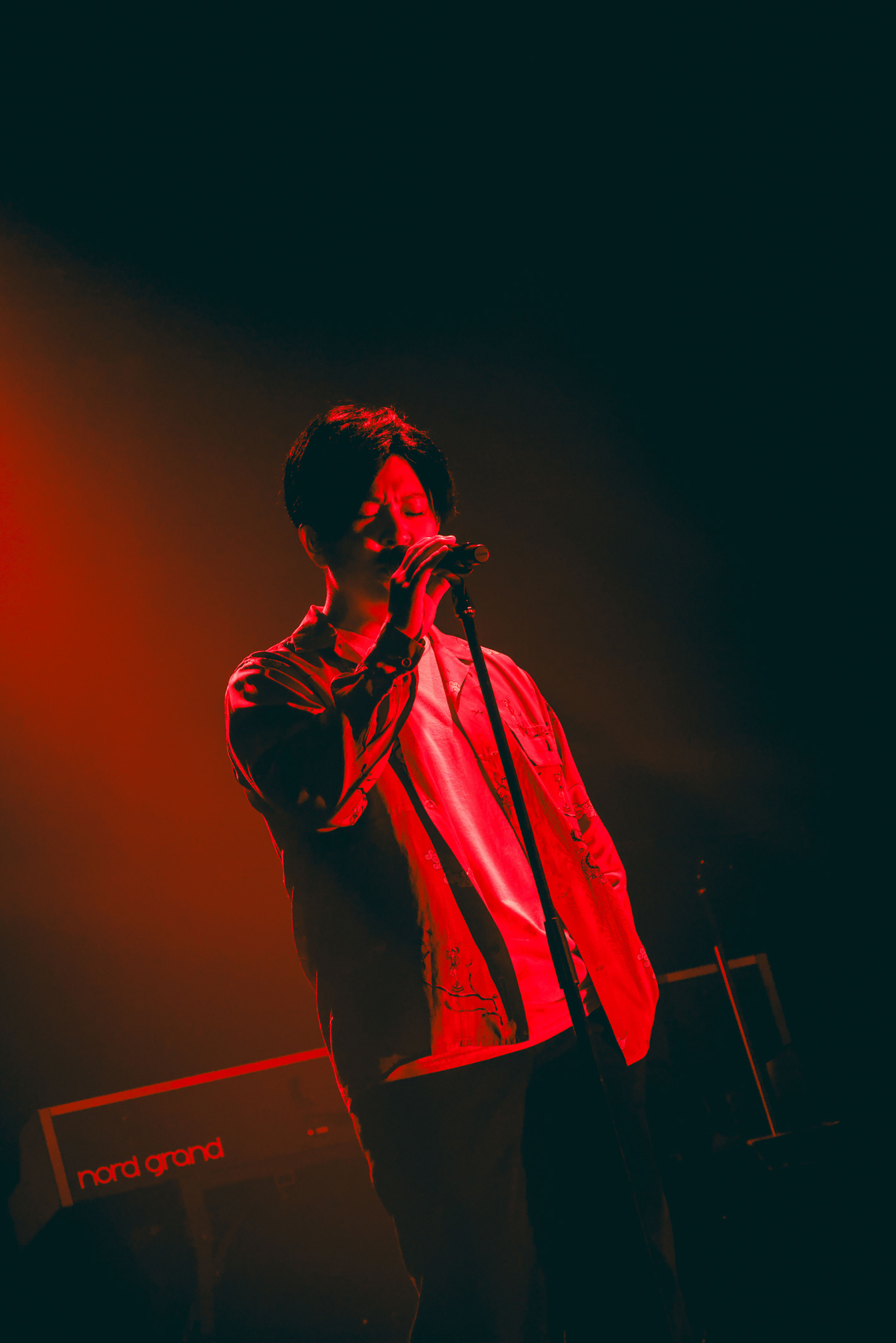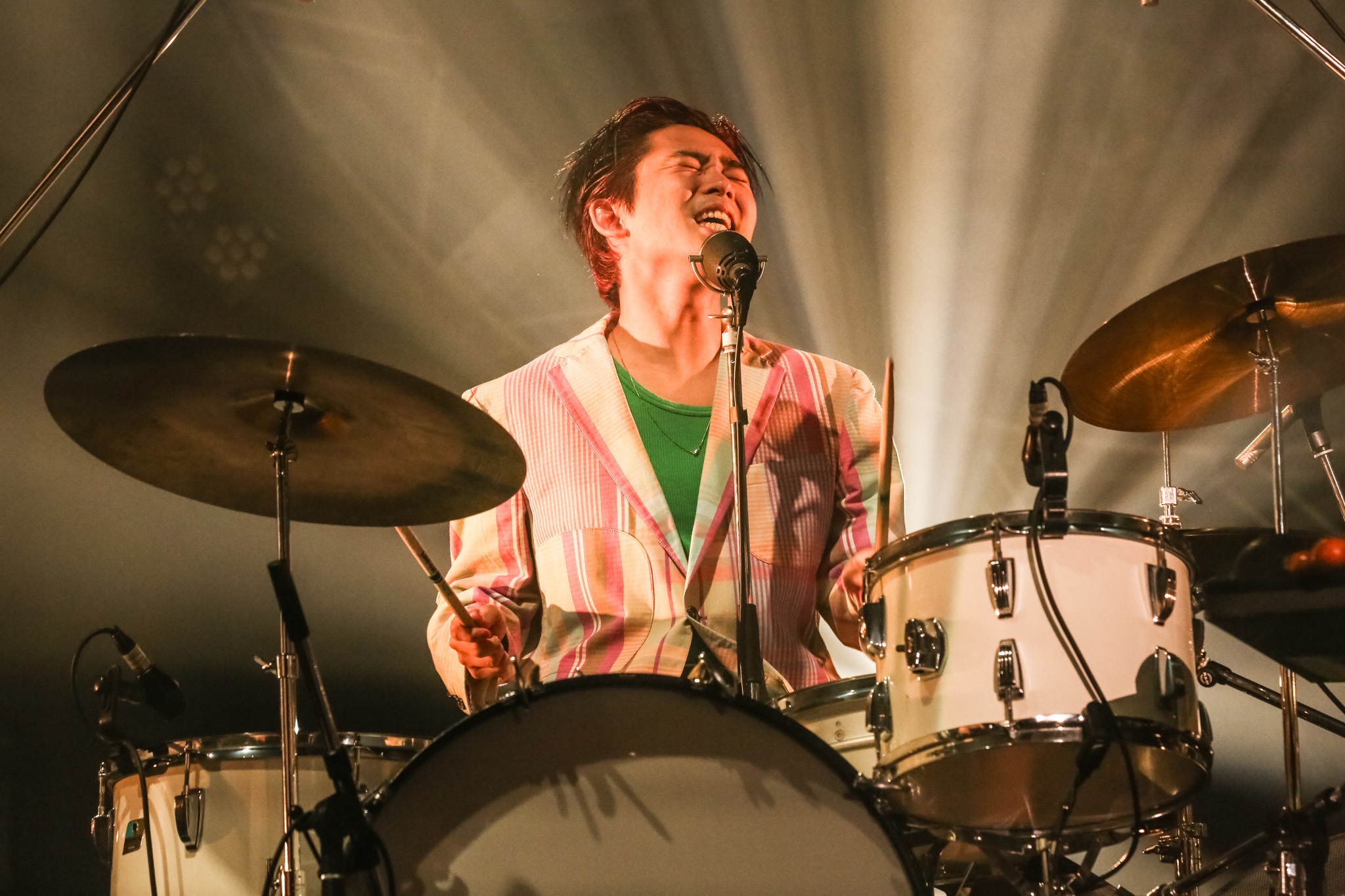 急性声帯炎の発症で片岡健太(Vo.Gt)のライブ活動が休止となり、荒井智之(Dr.Cho)と小川貴之(Key.Cho)の二人にサポートを加えたsumika[roof session]での参加がアナウンスされていたこの時間。落合は「片岡くんとも話をしたんですが、身体は元気で。もう少しで歌えるようになるけど、大事をとっての状態だったそうです。それにしても、おがりん(小川)頑張ってましたよ! ボーカルを担う曲もありましたけど、いつもはキーボードの前に座ってコーラスしているのに、今回はハンドマイクでZ-STAGEを駆け回っていましたから」と称賛。