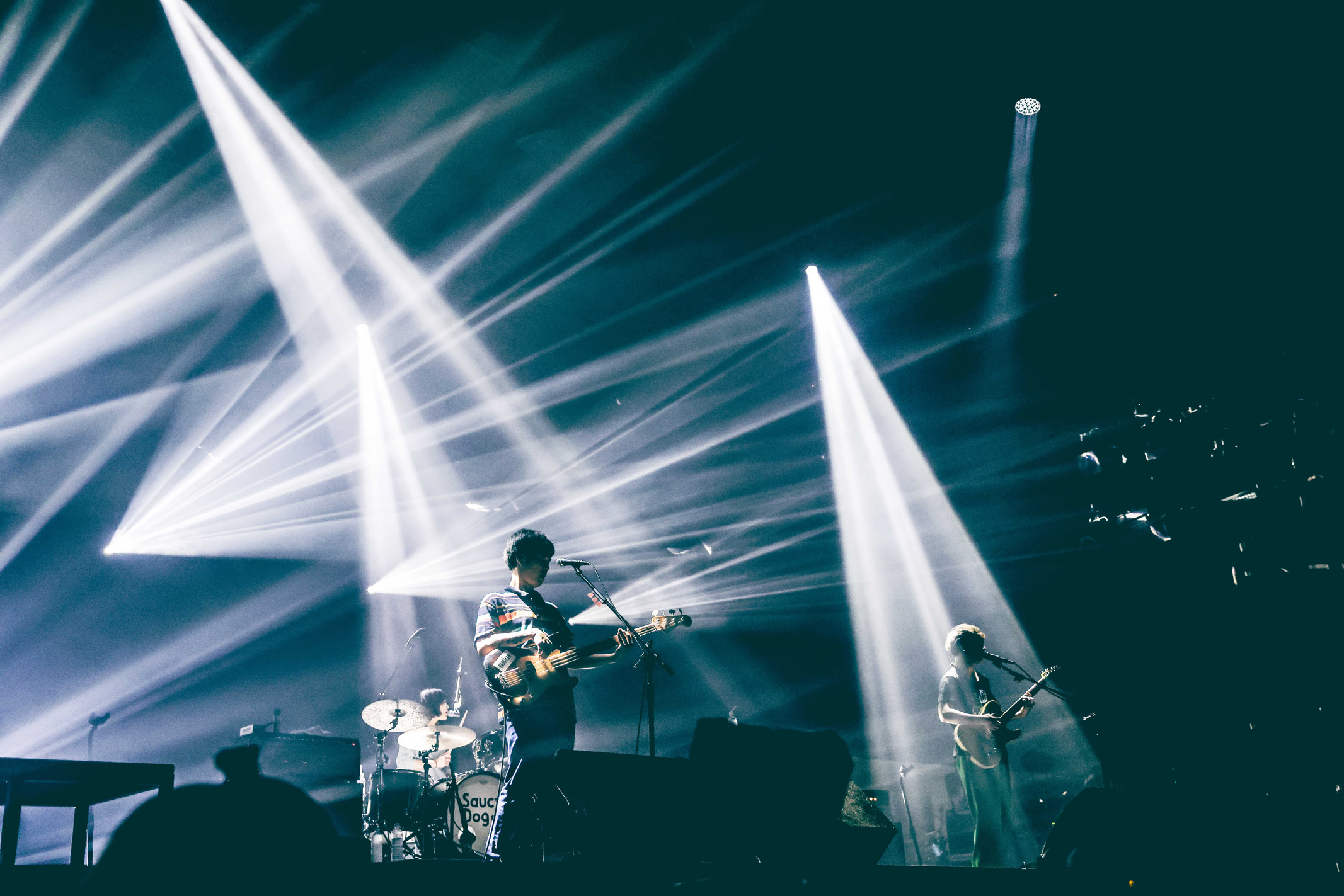 日本武道館、大阪城ホールと大舞台を経験し、著しい成長速度を見せてきたSaucy Dogがトリ前のZ-STAGEに。「もともと、歌の力強さや心に響くものはあったんだけど、しんちゃん(石原慎也、Vo.Gt)がキュートなキャラクターだから、これまではお客さんも見守るようなムードがあったかもしれない。でも、今は完全に逆ですね。大観衆の思いを3人がしっかり受け止めて、自信に満ちたバンドになったなと」(落合)、「『RADIO CRAZY』をはじめ、オチケンさんはたくさんライブを観ているから、バンドの変化にハッとさせられることも多いですよね」(加藤)。昨年より、以前より、一層大きくなったバンド像を確認した二人だった。
