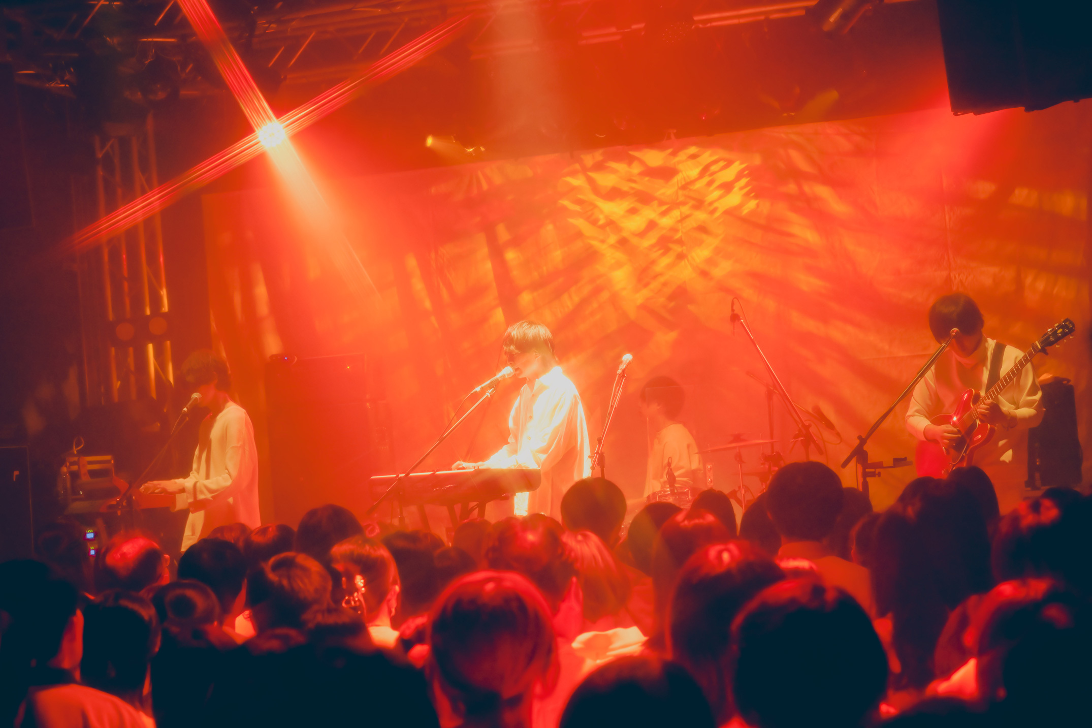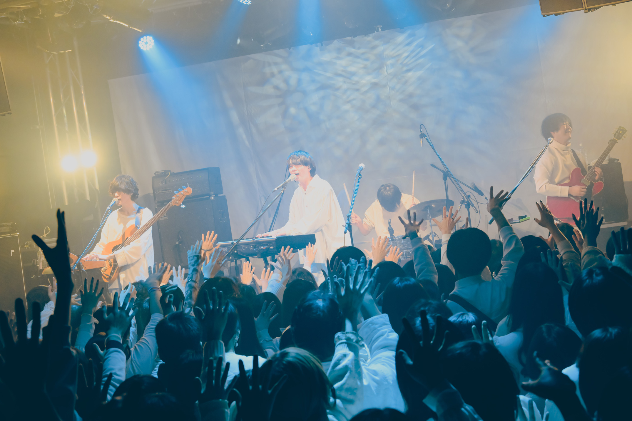 いつもと雰囲気の違うライブハウスとこだわりの空間に、否が応でもテンションが上がってしまう。続々と入場するオーディエンスの服はもちろん白色。「senses」オリジナルの白のロンTを着ている人も多く見られた。ステージの背面には大きな白い布が張られている。一体どんなライブになるのか。オーディエンスはワクワクとドキドキが入り混じった表情で開演の時を待っていた。