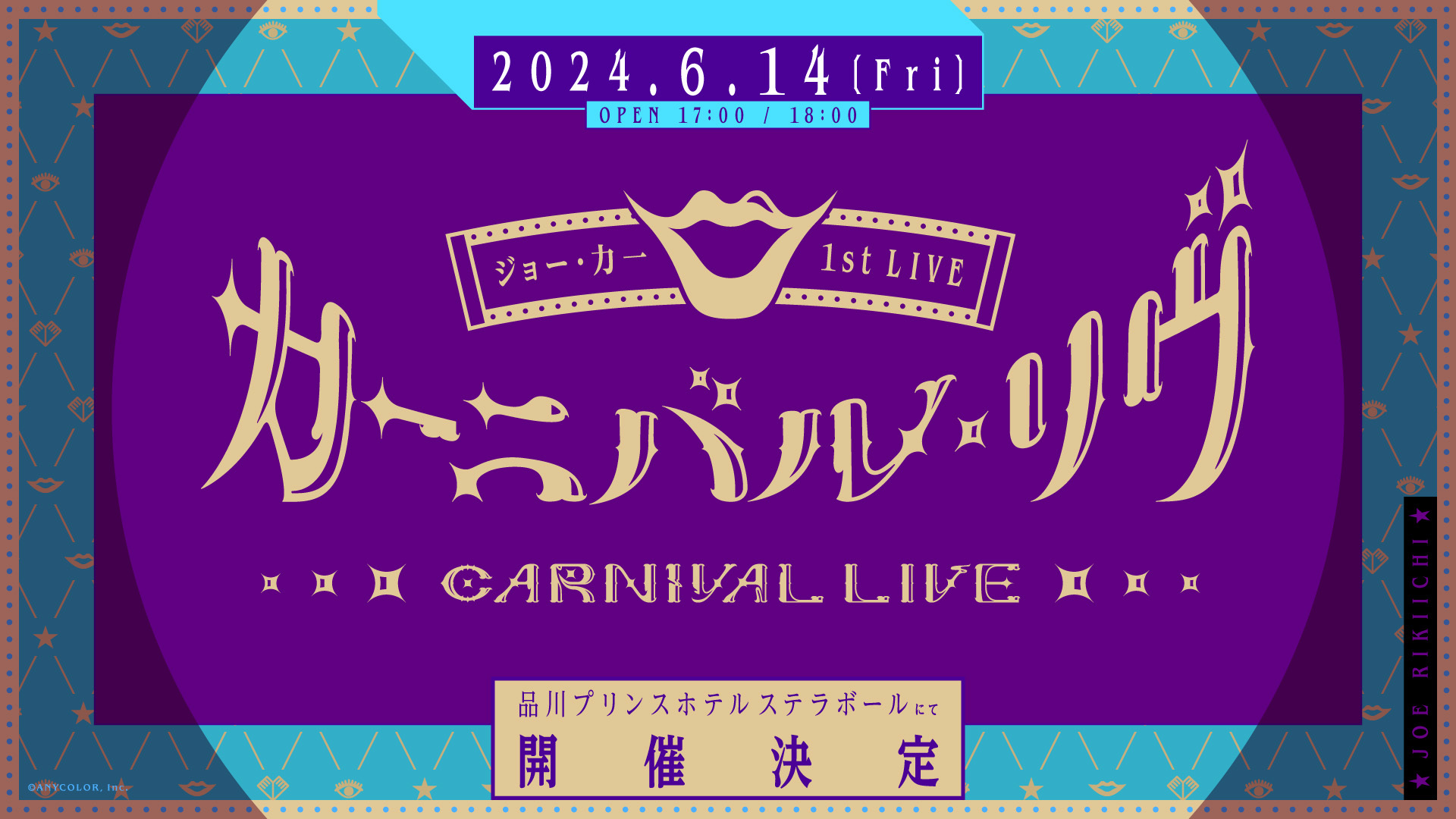 またジョー・力一は2024年6月14日(金)に品川プリンスホテルステラボールにて1st LIVE「カーニバル・リヴ」の開催も決定しており、独特な世界観を持つジョー・力一のライブパフォーマンスを目にできる特別な機会になることは間違いない。同ライブのチケットの抽選は1st MINI ALBUM『カーニバル・イヴ』に封入されているチケット先行抽選シリアルコードから実施される。ジョー・力一からのコメントも届いている。