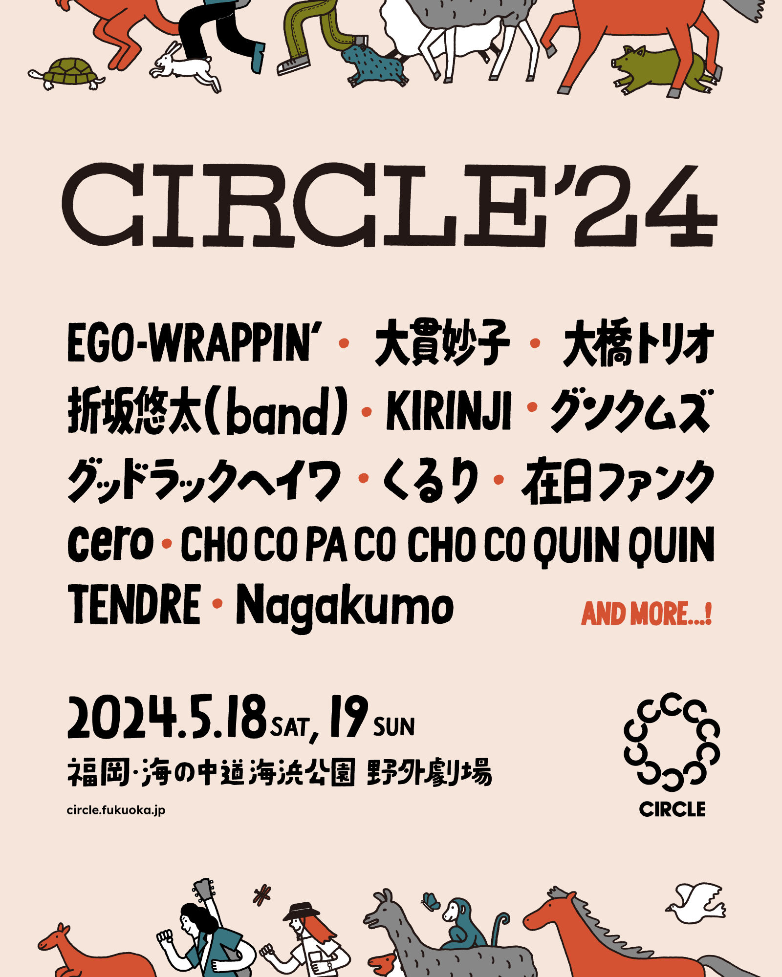 野外音楽祭『CIRCLE '24』が、2024年5月18日(土)、5月19日(日)に福岡・海の中道海浜公園 野外劇場にて開催されることが決定。あわせて、出演者が発表された。
