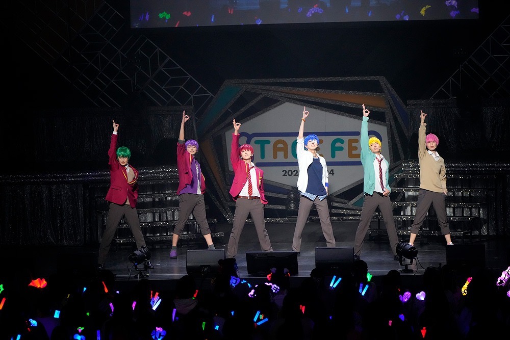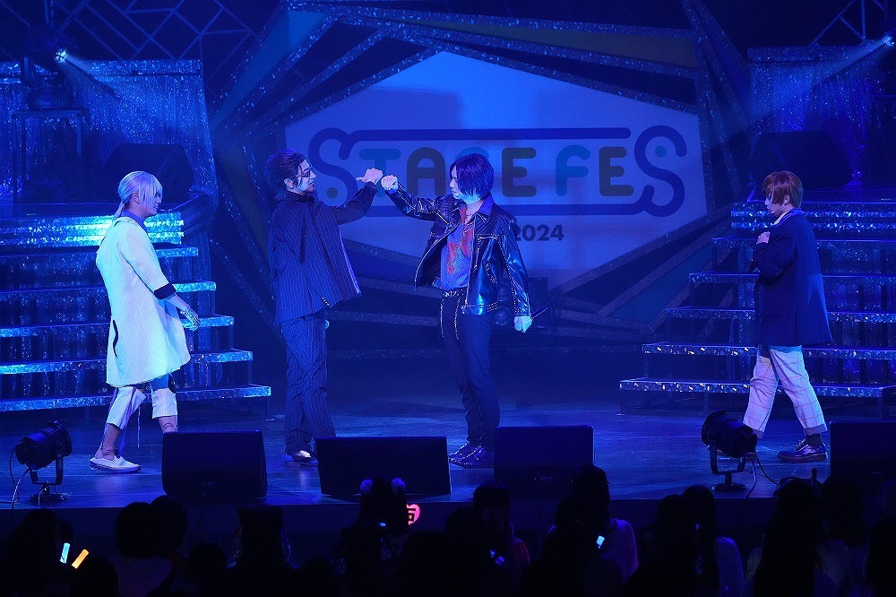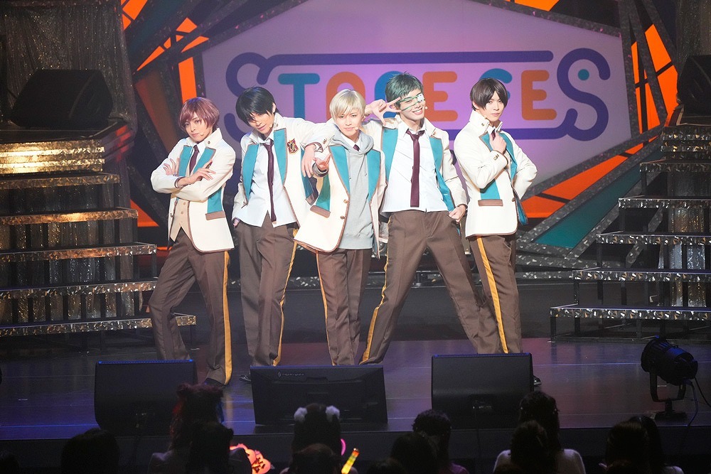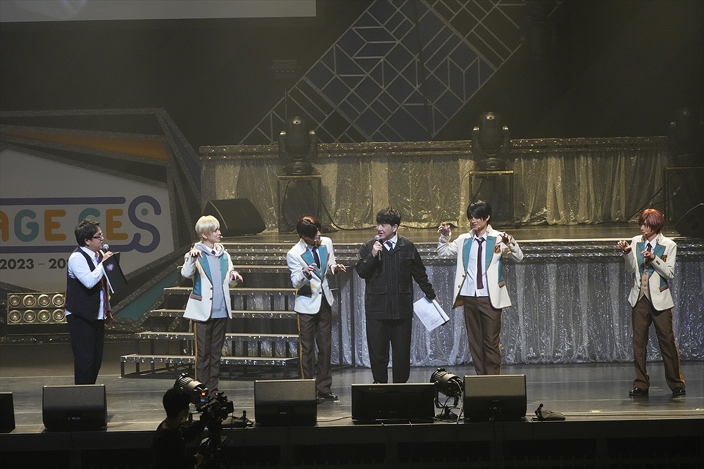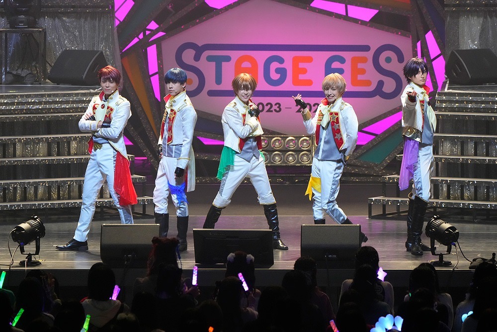 新メンバーとしては正真正銘、初のステージということで、会場は今日1番の悲鳴のような歓声につつまれた。主人公・星谷悠太(三井淳平)の「あの『憧れの高校生』! あの人みたいになりたくて、あの人みたいに踊ってみたくて、だからここまで来られた!」「オレは、夢を諦める方法なんて知らない!!!」の言葉とともに、「DREAMER(STAGE FES2023-2024ver.) 」を披露。TVアニメ『スタミュ』のOPテーマでもある、シリーズの歴史が紡がれた1曲をフレッシュに、キラキラした笑顔でパフォーマンス! 勢いそのままに、team鳳のメンバーがソロ曲をメドレーで披露すると、会場は大きな拍手につつまれた。続けてteam柊の「スター・オブ・スター! 」、衣装チェンジをしたteam鳳が「星瞬COUNTDOWN 」と、各チームの代表曲を披露し、個性がきらめくステージで魅了した。スタミュミュファンにはおなじみの楽曲「☆☆永遠★STAGE☆☆( STAGE FES2023-2024ver.)」では、まさかの客席におりてファンの近くへ!初ステージと思えない、輝かしいパフォーマンスで幕を閉じた。