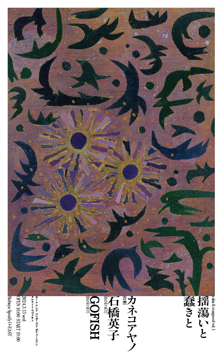 『calm&composed』は、AIR FLAG Incが新しく立ち上げたライブイベント企画。第一回目となる今回は、カネコアヤノ(合奏)、石橋英子(BAND SET)、GOFISH(BAND SET)といった3組の出演が決定。また、ビジュアルイラストは椎木彩子、デザインは宮添浩司が担当した。