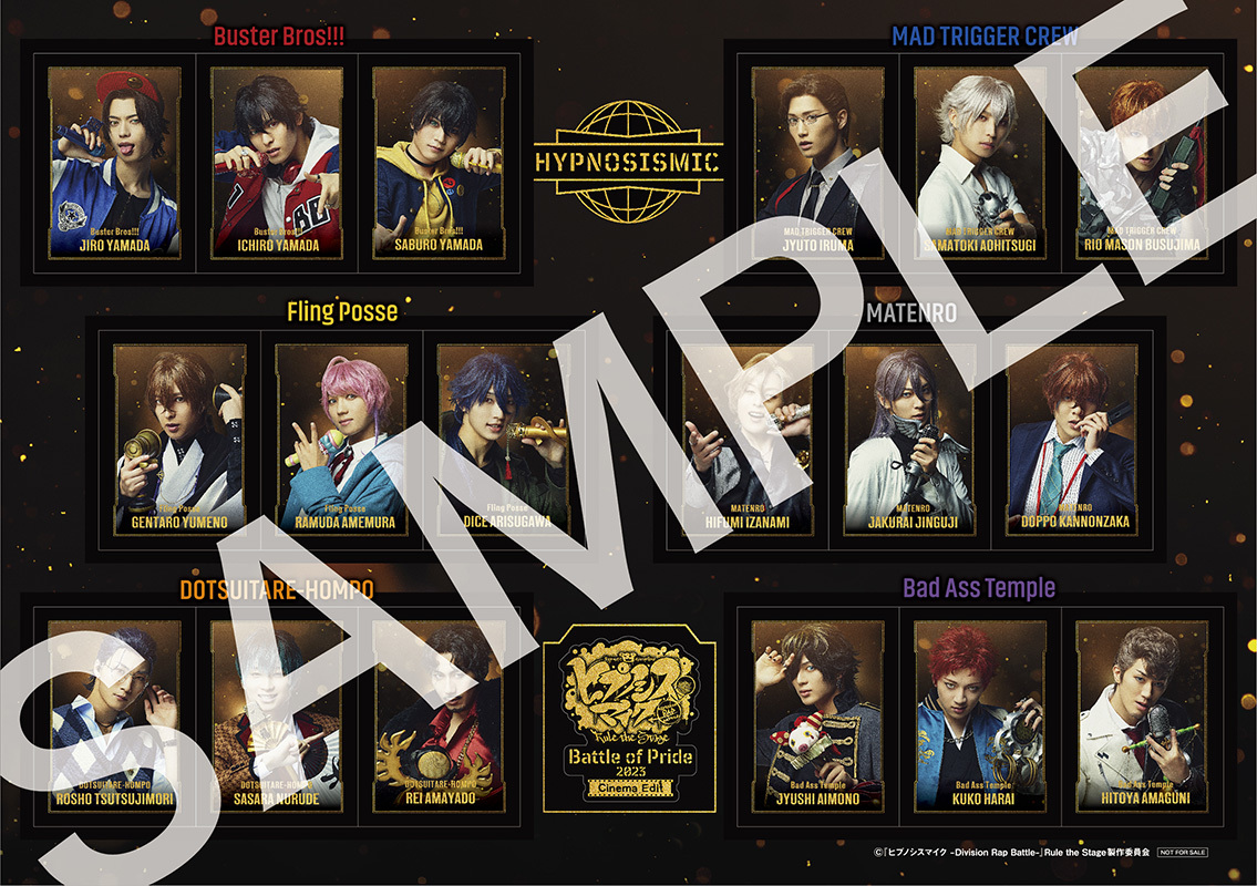 さらに、「ステッカーシート」「3面パノラマカード」と併せて、舞台公演時に入場特典として配布していた「ラバーバンド3個セット」(組み合わせは全4種)をランダム配布。(①“Buster Bros!!!”、“North Bastard”、“D.D.B” ②“MAD TRIGGER CREW”、“鬼瓦ボンバーズ”、“D4” ③“Fling Posse”、“Bad Ass Temple”、“道頓堀ダイバーズ”④“麻天狼”、“どついたれ本舗”、“糸の会”) 入場者プレゼントはそれぞれ数に限りがある。