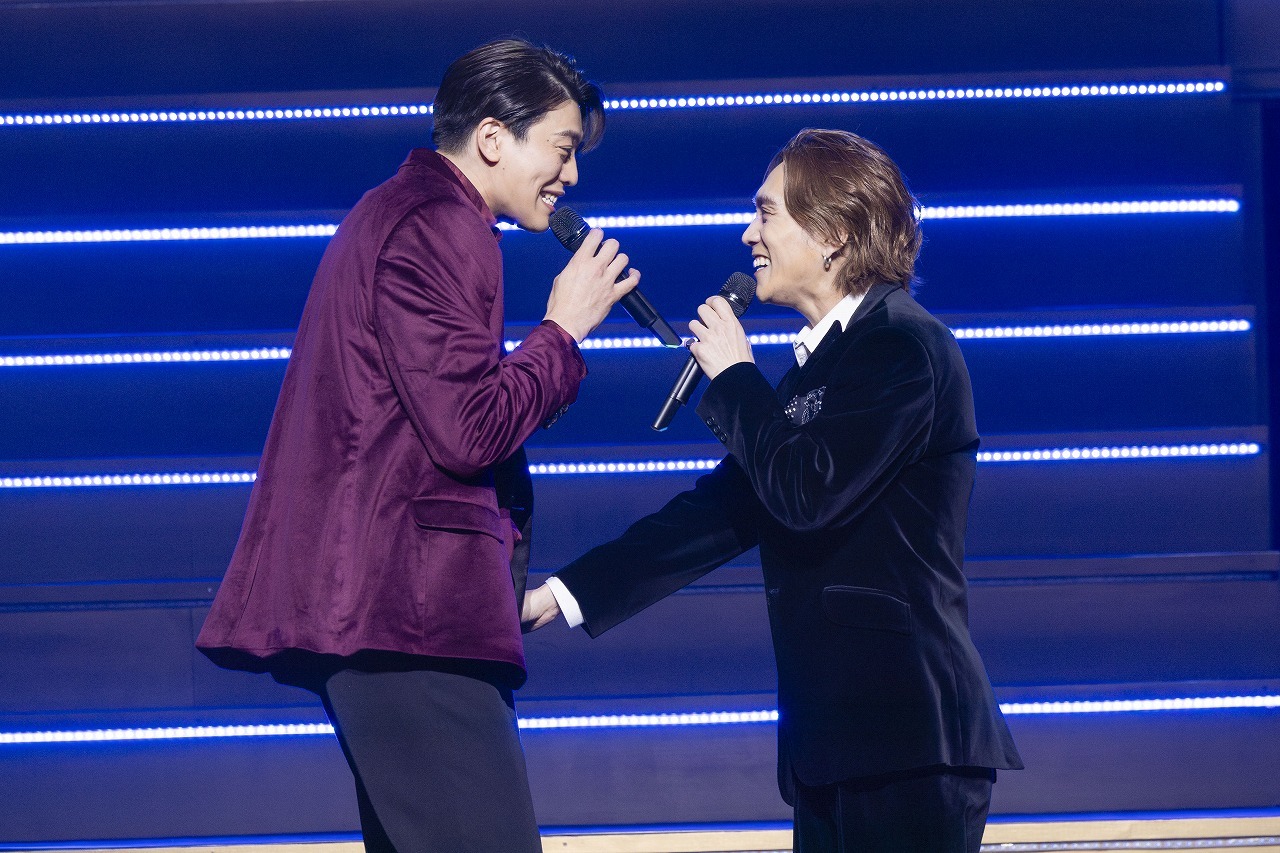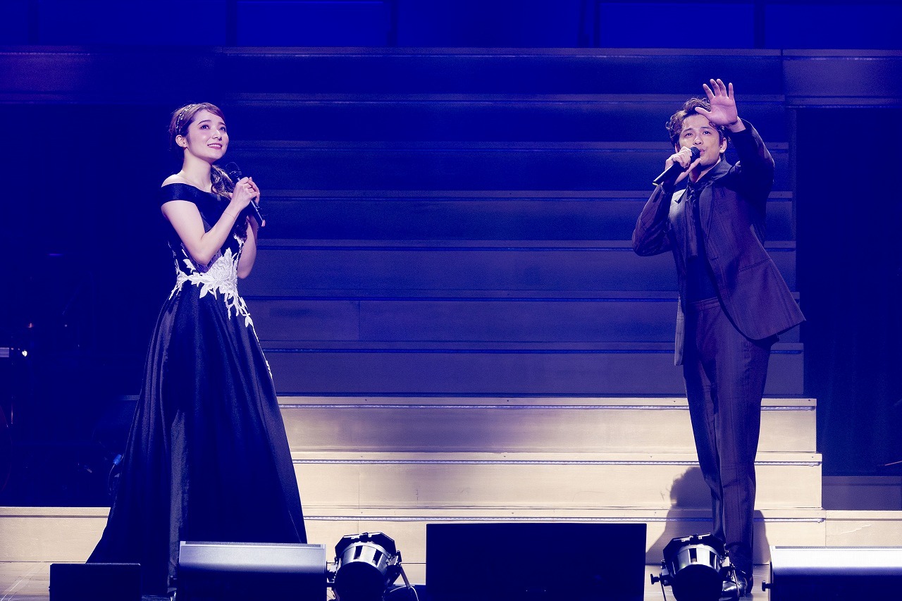 全員がステージに揃ったところで、海宝がMCの口火を切る。「唯一の昭和生まれの自分が最初にしゃべるというお達しがあったので」と笑わせながらしっかり挨拶するも、「次の時代を担う若手スターというのがこのコンサートの主旨なので宏規くんに回していただこうと思います」とすぐに三浦にバトンタッチ。三浦が仕切って思い思いの自己紹介が始まった。しかし、カウントダウンに合わせなければならないためにタイムキープが厳しく、しゃべりすぎると大貫がピアノで合図。平間が「(0時を)超えちゃってもいいよね〜」と呟くなど、和気あいあいの空気が伝わってくる。このあとも曲の合間にMCが入り、今回が初共演の二人組でのトークもあったが、甲斐が木下に「どういう人なんですか」と聞いたり、森崎がsaraの苗字を聞き出してしまったり、笑いが絶えなかった。なかでも三浦の、「小学生のときに毎朝、『さぁ今日も俺の輝かしい人生が始まる』と言って学校へ行っていた」というエピソードには会場中が爆笑。歌はもちろんだが、MCから透けて見えるそれぞれの素顔も、観客は大いに楽しんだ。