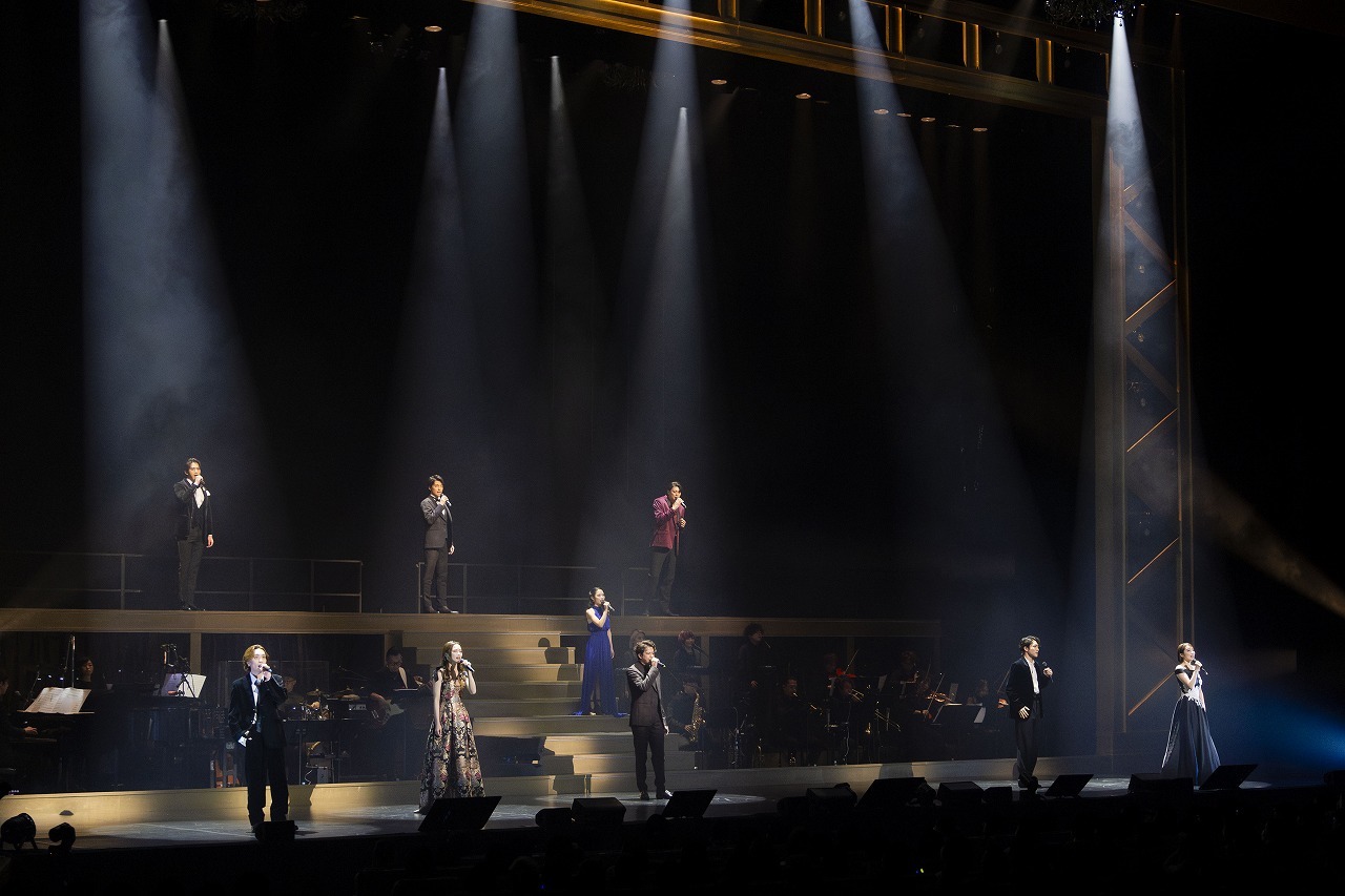最初のオーバーチュアで演奏されたのは耳馴染みのある楽曲ばかり。早速心が弾んでくる。続いて聴こえてきたのは、『レ・ミゼラブル』の「One Day More」だ。ひとりずつ登場しながら歌い、どんどん声を重ねていく様がワクワクさせる。楽曲の力強さも相まって、一気に会場の熱が上がった。今回の構成・演出を担ったのは、『リトル・ショップ・オブ・ホラーズ』、『グリース』『ネクスト・トゥ・ノーマル』など、数多くの作品を手掛けている上田一豪。音楽監督を、井上芳雄などのアーティストに支持されている大貫祐一郎が務め、クリエイティブ陣も冒頭から手腕を見せた。