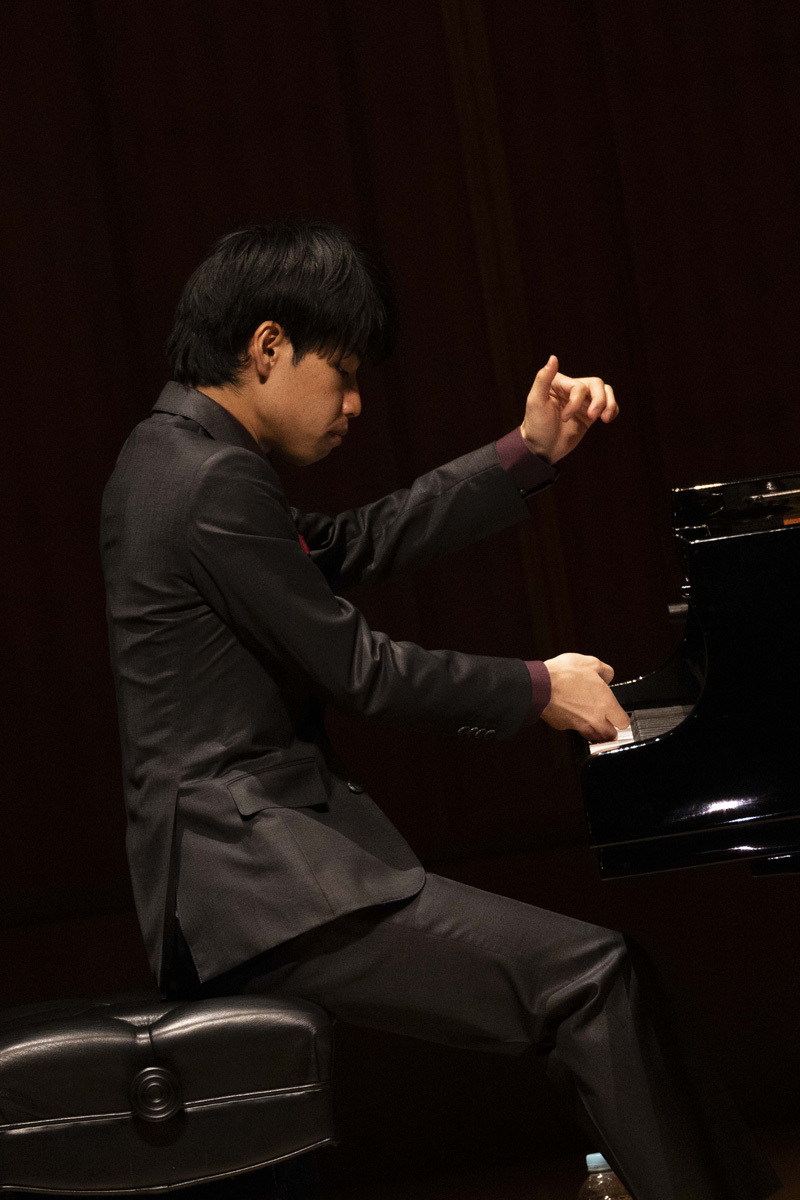 客席の期待もマックスに高まる中、務川がステージに登場。最終日にして疲れた様子もなく、いつも通りの爽やかな印象だ。しかし、当夜、ボルテージが上がっていたのは何も聴衆だけではない。演奏者本人である務川もまた冒頭第一曲目のバッハ「半音階的幻想曲とフーガ」から、脂ののった集中力みなぎる演奏を聴かせた。通常なら、この作品の性格からして “ボルテージ” や “高揚感” といった言葉はかけ離れているような感じがするが、前半の幻想曲からその鮮やかで華麗な技巧の冴えもあいまってモダニズム感あふれる、いやむしろ現代性の片鱗すら感じさせる斬新でエネルギッシュな演奏を聴かせた。