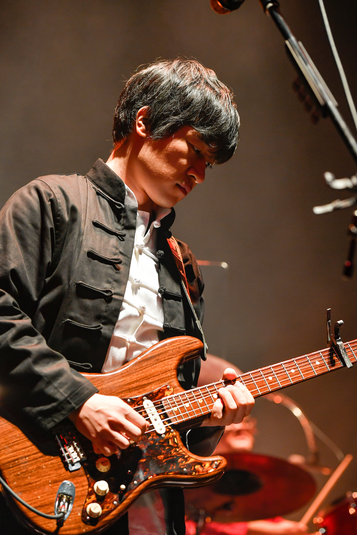 開演時間を迎え、日本の正月における代名詞的なBGMである筝と尺八の二重奏による「春の海」が流れるなか、小出祐介(Vo,G)、堀之内大介(Dr,Cho)、関根史織(Ba,Cho)の3人に加え、袴姿の遠山大輔(グランジ)がステージに登場。Base Ball Bearと“遠山校長”といえば、かつてTOKYO FMのラジオ番組『SCHOOL OF LOCK!』を共にしていた以来の仲であることは、ファンもよく知るところだ。