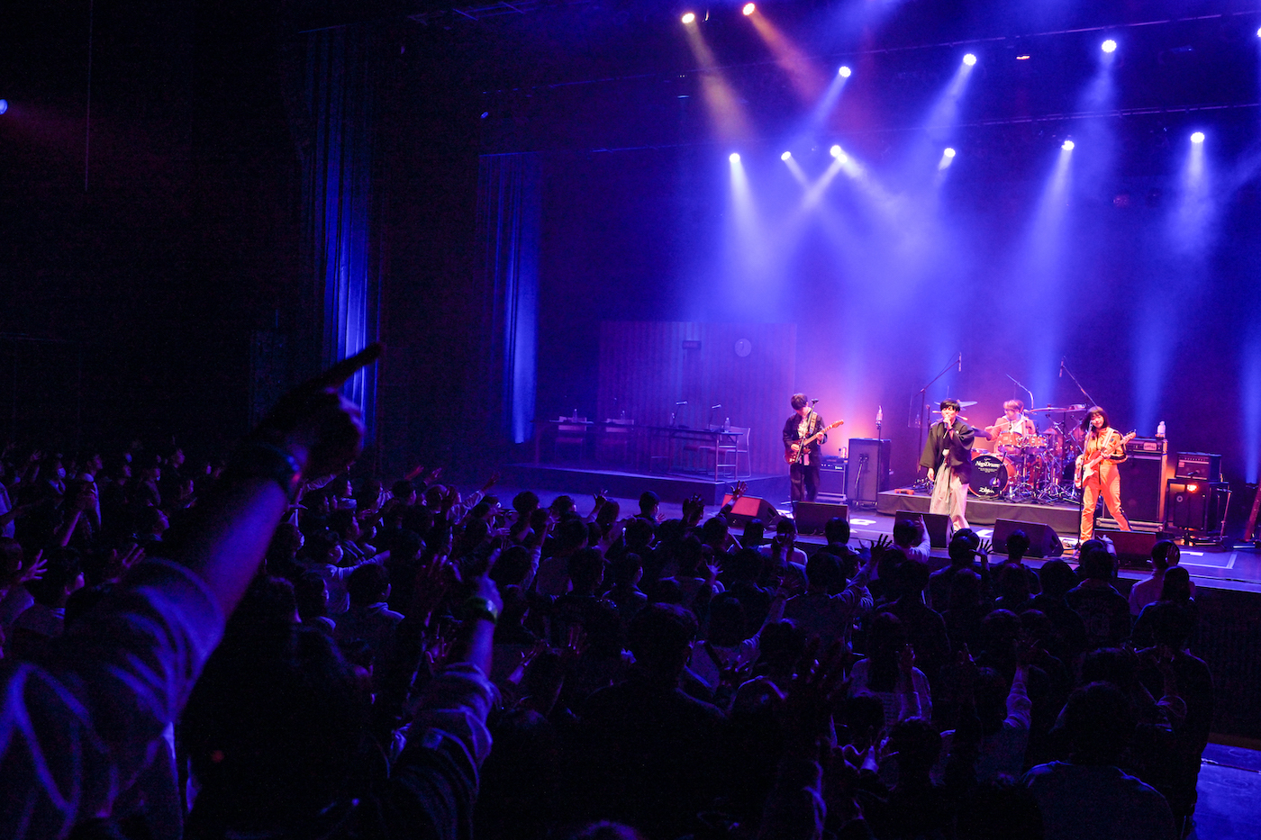 トークブースに戻ったメンバーは、ここでオーディエンスに吉報を届ける。2月28日に6曲入りのミニアルバム『天使だったじゃないか』のリリースと、3月から6月にかけて本作を携えた全17本の全国ツアーの開催が決定。そして、ラストのセクション4では、『天使だったじゃないか』から「夕日、刺さる部屋」が初披露された。小出はトークの中で新作について「自分たちが原点の部分で影響を受けていた80年代から90年代のギターポップと向き合って作ってみた。サウンドの質感がこれまでの作品とかなり違う」と語っていたが、その言葉通り「夕日、刺さる部屋」は懐かしくもフレッシュなブリットポップの匂いと、二度と戻らない誰かのあの日、あるいは誰かの今日、という青春の輝きと陰影を濃密に閉じ込めたような楽曲だった。