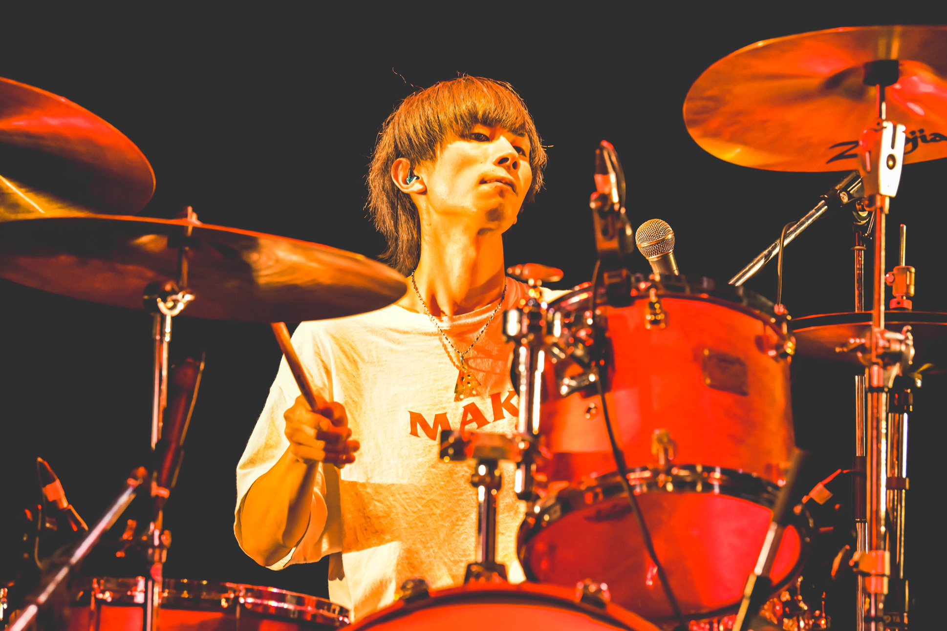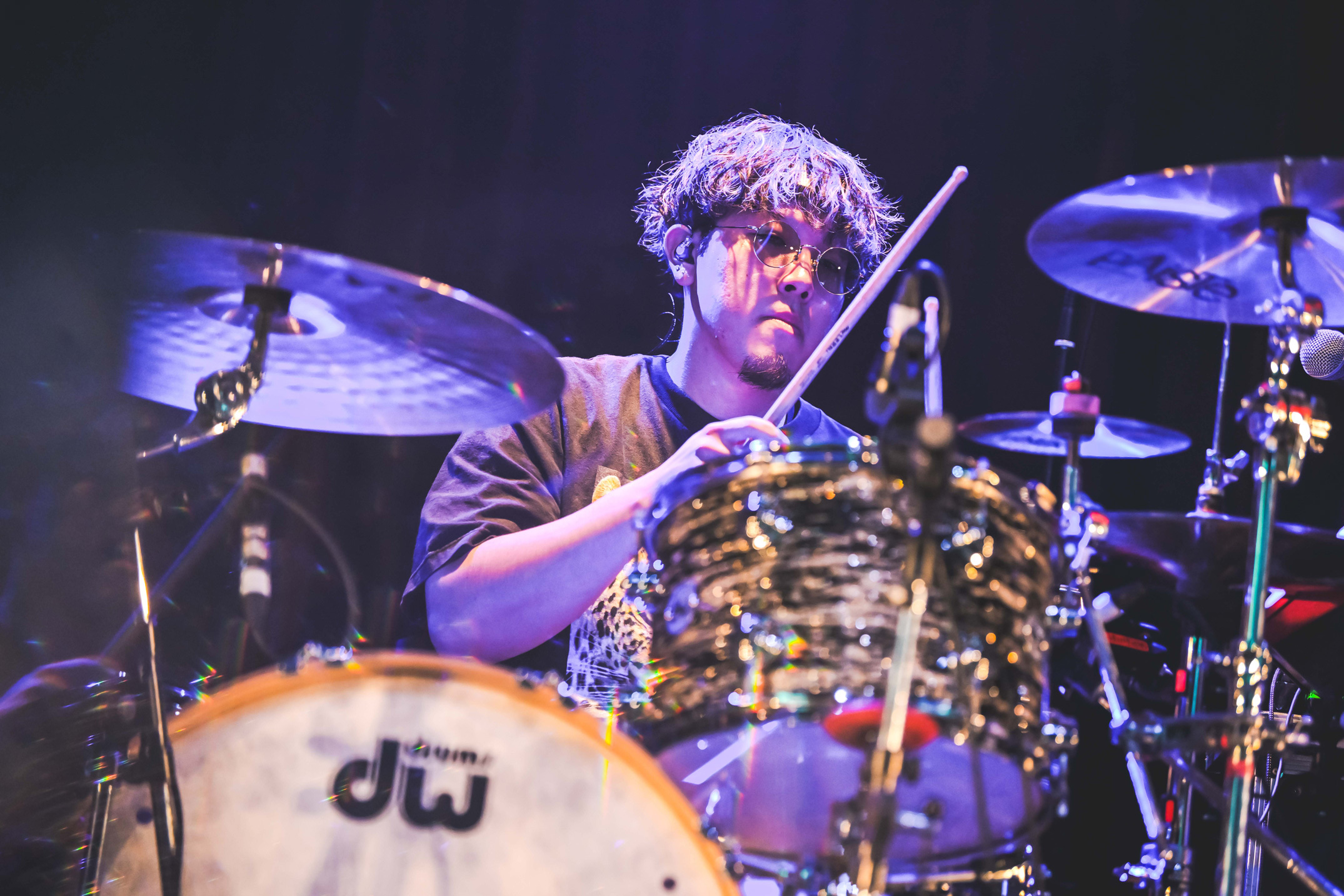 さらに「お手を拝借! 頭の上でいける?」とクラップを求め、10月にリリースされた新曲「どうにもならんわ」を爽やかに響かせる。「ここからギア上げるよ!」と「誰でもいいのだ」を披露し、「俺らのこと見つけてくれてどうもありがとう! ただ1個確かなことは、俺らバンドが好きで、音楽が好きで、ライブが好きで、ライブハウスが好きで、BIGCATに集まった似た者同士。だからこそやるべきことは1つ! 皆で最高の1日作ろう!」とラストチューン「ex.ガールフレンド」を力強く、自身の想いをぶつけながら全力でプレイした。キャッチーでアッパーな楽曲の連投で、熱いロック魂も見せつつ、フランク&カラフルなステージで彩ったmoon dropだった。