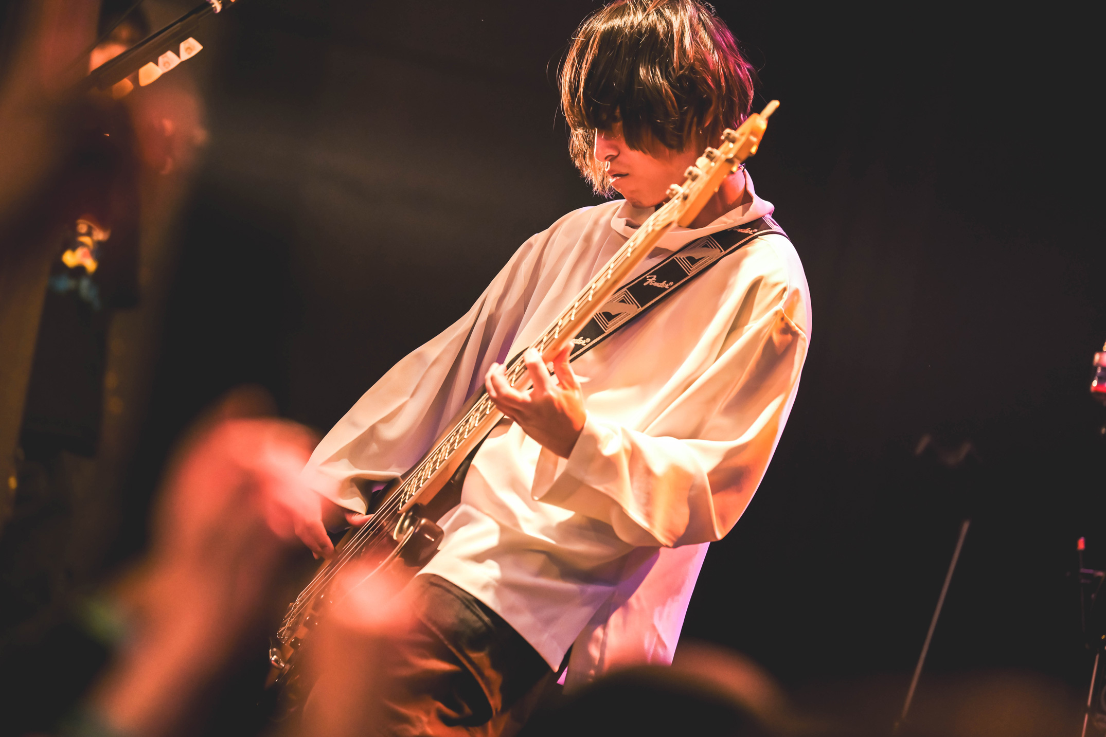佐藤が「今日は年内ラストの大阪ということで悔いのないように楽しんでいきましょう」と挨拶し、「満たされない」、「センチメンタル」と疾走感たっぷりの楽曲を連投。yutoriはそれぞれの楽器の音が立っていると感じる。全員でのキメやソロプレイなど、演奏力に裏打ちされたプレイは見ていて気持ち良い。そこから雰囲気が一転、「君がいなくなってから、1人がすごく嫌いになった」と佐藤が声を震わせて語り、導入部を作り上げた「安眠剤」、佐藤が作詞作曲を手掛けた「ワンルーム」、ソリッドでダークな「ヒメイドディストーション」でヒリヒリした影の部分を表現した。