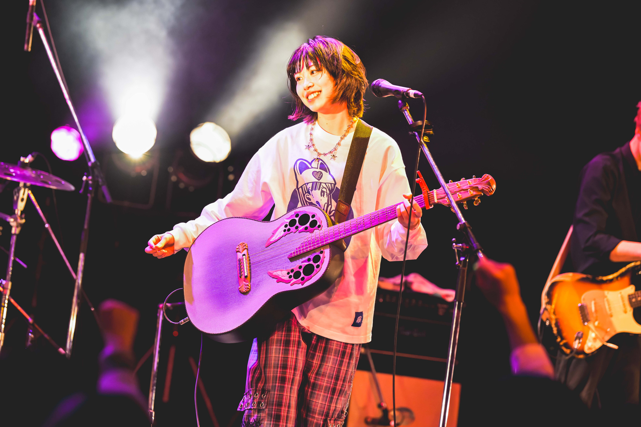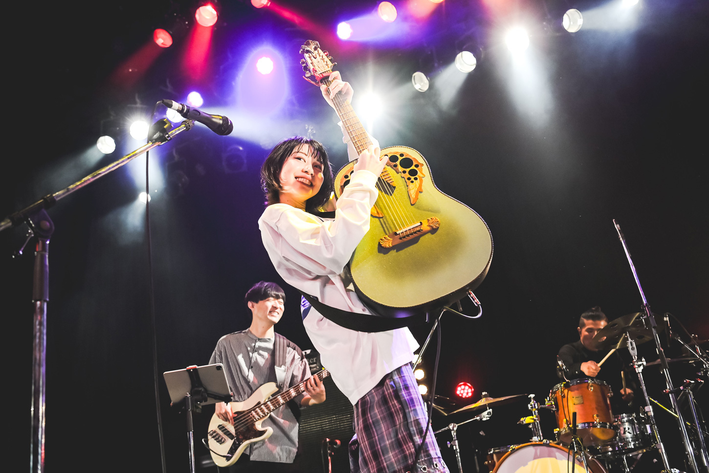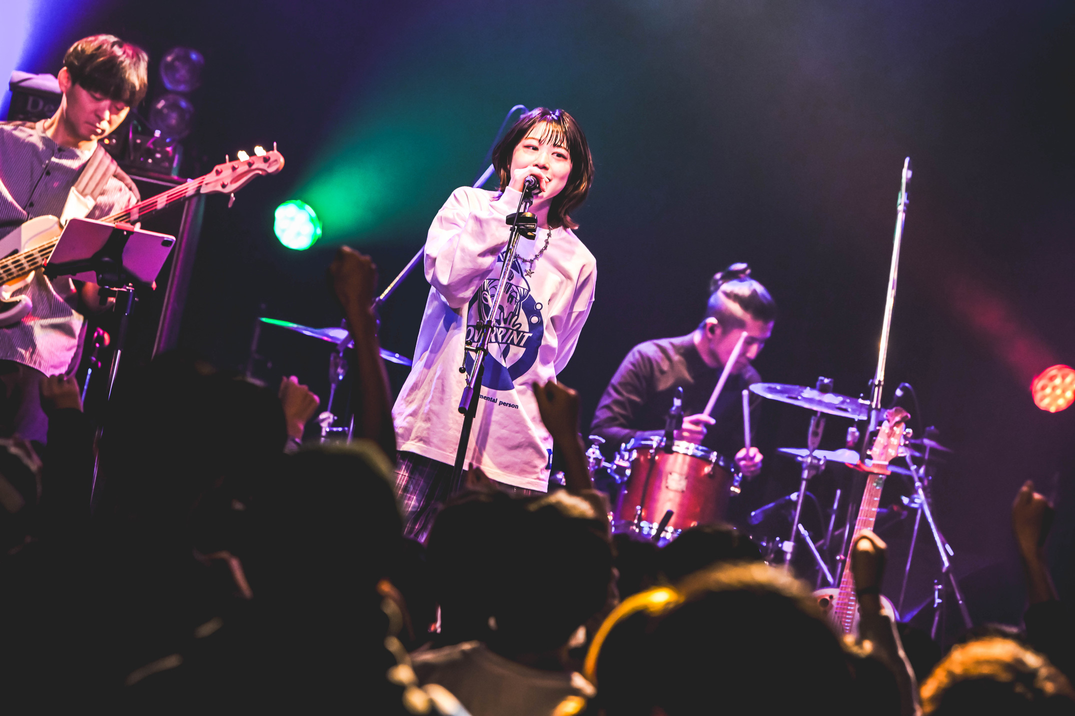 「今までのライブハウスの中で1番大きいステージに大阪で立てて嬉しいです」と笑顔で感謝を述べ、ギターを持って「笑ってベイビー」を明るく歌い、最後は「タイトロープ」で「手上がりますか!」とフロアを巻き込み、クライマックスに向けて良曲を気持ち良く響かせた。見るたびに違った顔が見れそうな彼女に俄然興味が湧いた。