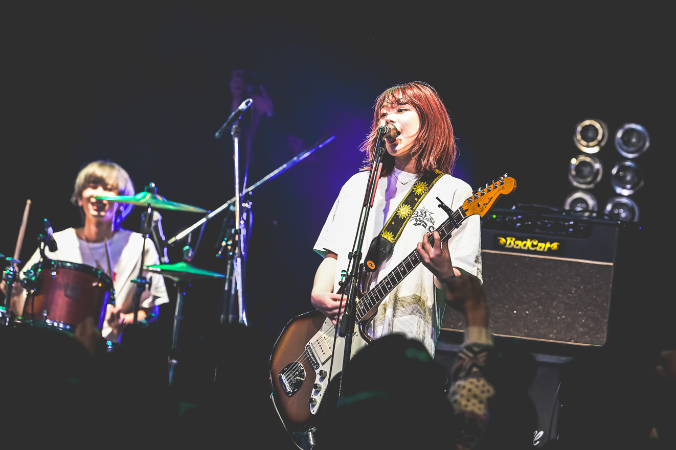 笑顔でマイクスタンドの前に立った汐は、パンツのポッケに親指を引っ掛けて「ビーボーイ」を楽しそうに歌いだす。豊かなバンドサウンドとグッドメロディ、みずみずしい歌声が真っ直ぐに飛び込んでくる。そしてハタノ推し曲の「味噌汁とバター」を元気に響かせ、クラップで会場をひとつに満たす。