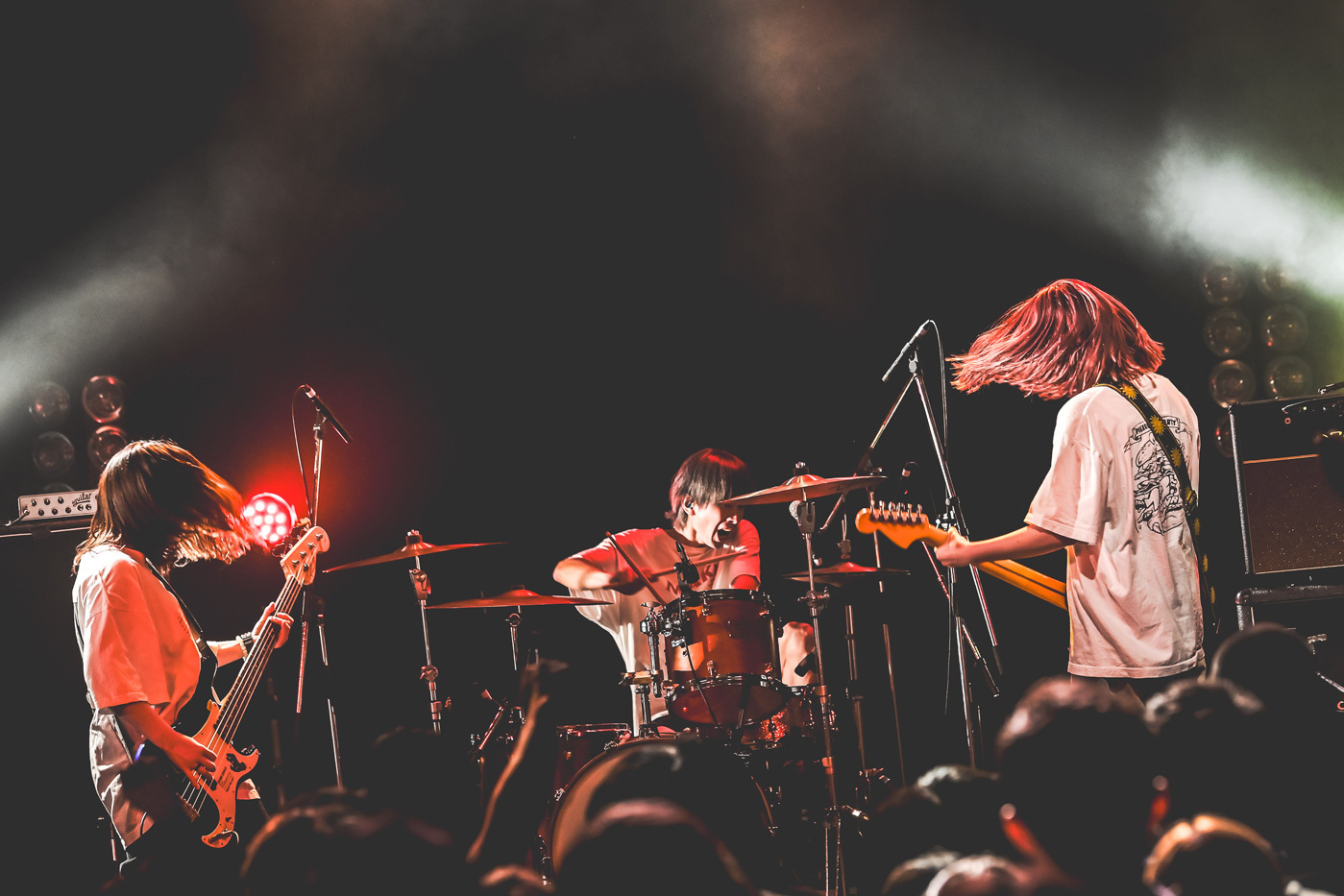 「非行少女」、「かわいこちゃん」と一気にロックチューンを叩き込み、山本は「今日は呼んでもらってありがとうございます。今年7月のリリースの時に802のハタノさんの番組に出させてもらったりしたことが今回に繋がったと思う」と感謝を述べ、メロディアスな「大阪」を伸びやかに響かせる。前半がバラード、後半でロックサウンドに変貌する「if」ではバンドの表現力の幅広さを見せるとともに、曲中で叫ぶように歌う山本の存在感をより際立たせる。