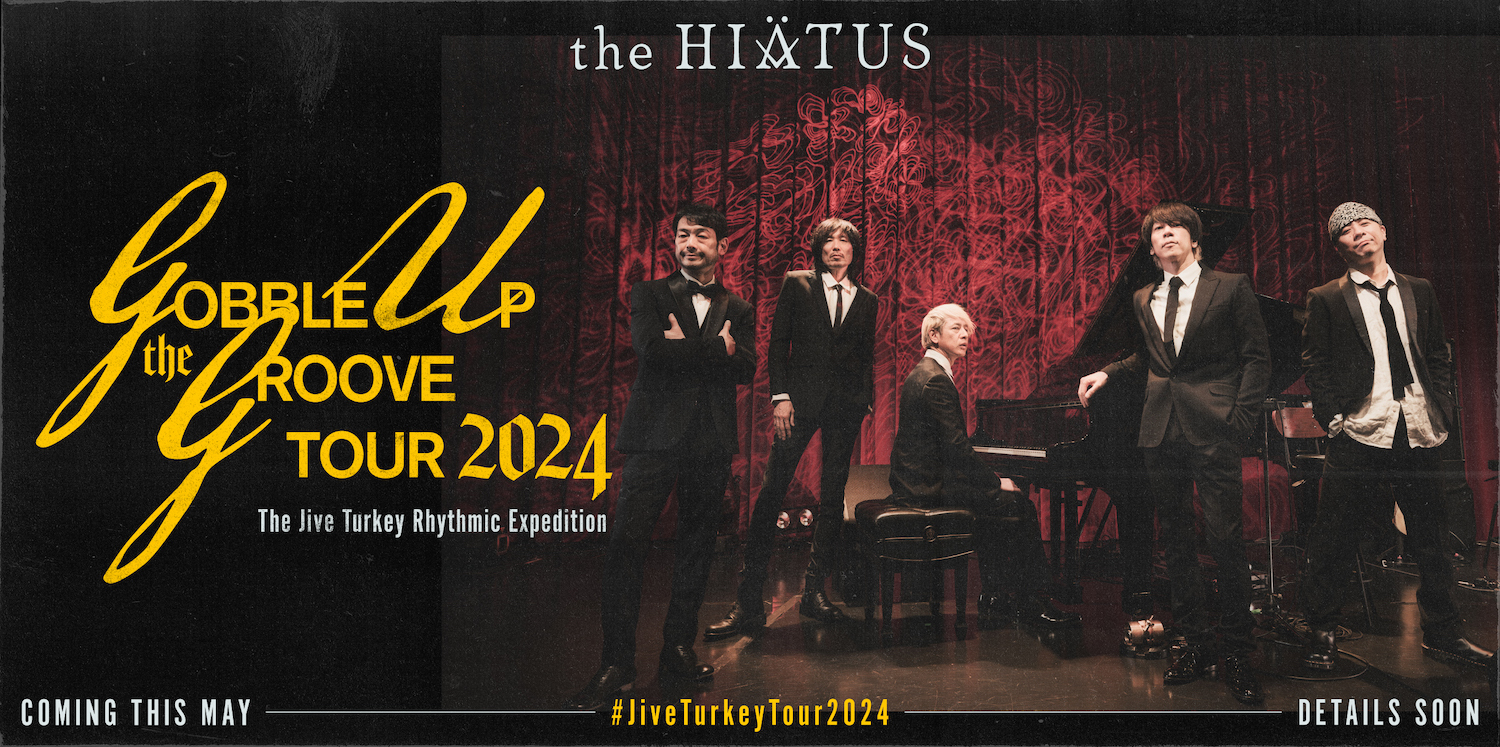 2016年以降、恒例となっているthe HIATUSのジャズクラブツアー『Jive Turkey』シリーズ。その拡大版として全国を廻るツアー『Gobble Up the Groove Tour 2024 – The Jive Turkey Rhythmic Expedition -』の開催が決定した。